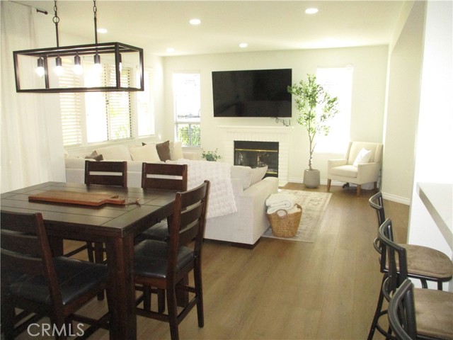 This tastefully upgraded townhouse is located within the gated community "The Club". First level end unit features an open and inviting floor plan with seamless flow between living, dining, and kitchen areas, perfect for daily living and entertaining. Bright living room with cozy fireplace and large windows that let in abundant natural light. Remodeled kitchen with modern cabinetry, quartz counter tops, and bar seating. Newer luxury vinyl flooring throughout. Two generously sized bedrooms with closets and plenty of storage. Two remodeled full bathrooms, one ensuite and one guest. Includes an inside laundry area and direct access 2 car garage. Common areas include pool, spa, and private lake. Wood Ranch is one of Simi Valley’s most sought-after master-planned communities — family-friendly, well-maintained, and scenic, centered around golf, parks, and open space living. Welcome home to The Club at Wood Ranch!