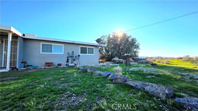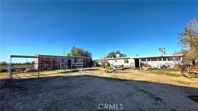 An extraordinary opportunity to own a private desert ranch-style home spanning 11.2 pristine, level acres, where expansive skies, breathtaking desert and mountain views, and absolute tranquility define everyday living. This spacious 4-bedroom, 2-bathroom single level residence offers 1,845 sq ft of thoughtfully designed living space, blending comfort, functionality, and seamless indoor-outdoor flow. Anchoring the property is an impressive 2,500 sq ft custom Butler’s building featuring soaring 30’ ceilings, a mezzanine, and an oversized RV roll-up door—ideal for a world-class workshop, collector’s garage, creative studio, business use, or storage for a boat or recreational toys. Designed for independence and efficiency, this home boasts an owned solar system, private well, hookups, and ample RV and boat parking inside or out, allowing for an off-grid lifestyle without sacrificing convenience or comfort. Equestrian amenities include a four rail heavy gauge horse corral with cover, while additional storage is provided by a separate, large tack container. The expansive acreage offers exceptional potential to expand—perfect for additional residences, guest quarters, barns, arenas, or a private retreat compound. Set in a peaceful and secluded setting with easy access to I-40 and Route 66, yet within reach of major destinations: approximately 30 miles to Barstow, 85 miles to Big Bear Lake, 145 miles to Las Vegas and Laughlin, and 167 miles to Lake Havasu. This remarkable property delivers the rare combination of space, privacy, self-sufficiency, and refined desert living—a true sanctuary for those seeking freedom, beauty, and limitless possibility.