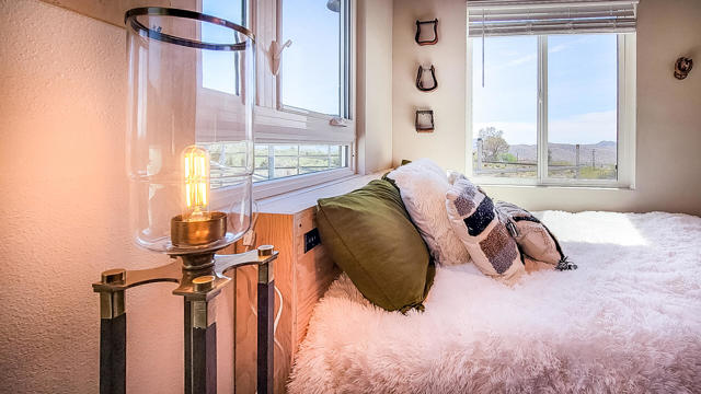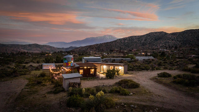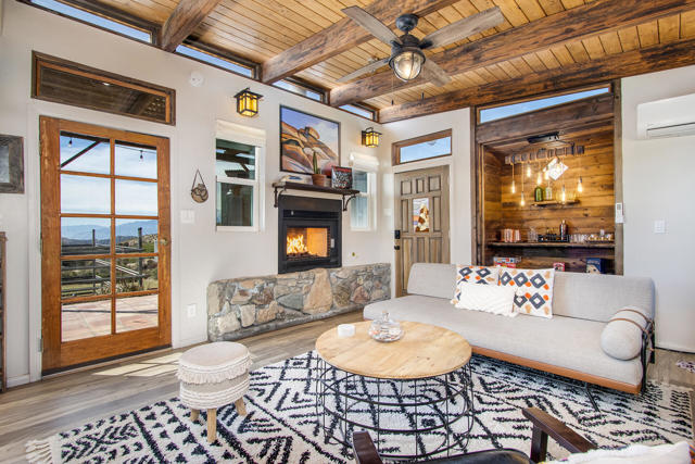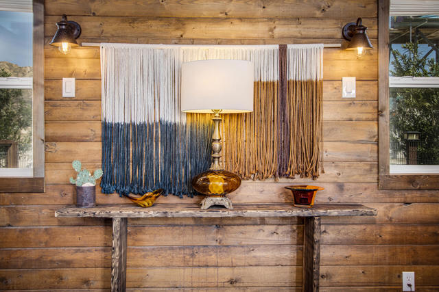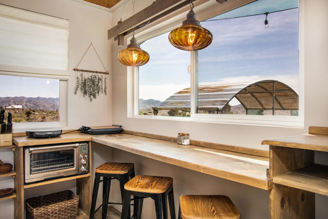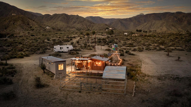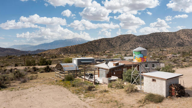 *Home is permitted as Single Family ResidenceWelcome to Owl's Nest--a truly one-of-a-kind high desert retreat situated on 5 sprawling acres with breathtaking panoramic mountain views in every direction, including stunning vistas of Big Morongo Canyon. This beautifully renovated home captures the essence of high desert living with warm, rustic charm and thoughtful design throughout. Though compact in size, every inch of this home has been masterfully utilized. The inviting living room features large picture windows that flood the space with natural light and frame the spectacular views, along with a cozy gas fireplace perfect for cool desert nights. Just outside the living room, you'll find a small fenced-in dog run area--ideal for your furry friends to safely enjoy the desert air. The kitchen is a true gem, offering a charming breakfast bar with a picture-perfect window where you can sip your morning coffee while taking in the serene landscape. With a copper sink, wood cabinetry, and stylish finishes, the cabin radiates character and warmth. Outside, the magic continues with two horse stalls and a painted water tower adorned with an owl--an ode to the property's name. A fully finished and beautifully styled shipping container offers two additional sleeping areas and a bathroom, creating a dreamy private guest retreat. Whether you're looking for a peaceful full-time residence, a weekend getaway, or an incredible investment opportunity as a vacation rental, Owl's Nest offers an unmatched blend of comfort, charm, and natural beauty--this is desert living at its finest.