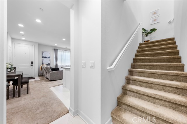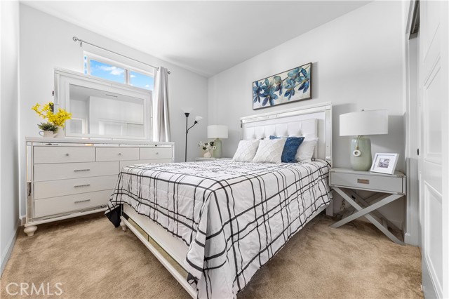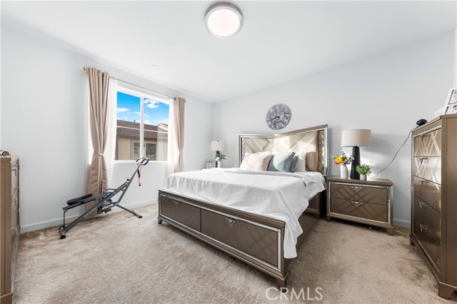 Welcome to this beautifully designed 3-bedroom, 2.5-bath home in the highly desirable New Haven Community of Ontario Ranch. Built in 2022, this home is just like new. Offering 1,396 sq ft of bright, open living space with modern kitchen with island seamlessly open to dinning area and living room, a powder room on 1st level for guests, plush carpeting throughout, the spacious primary suite includes a private en-suite bath and walk-in closet, with two additional bedrooms and a full bath. Enjoy an attached two-car garage, solar panels, tankless water heater, and access to resort-style amenities including pools, clubhouse, fitness center, BBQ areas, and fire pits. Conveniently located near schools, freeways, shopping, and dining.