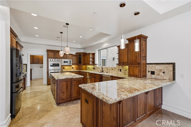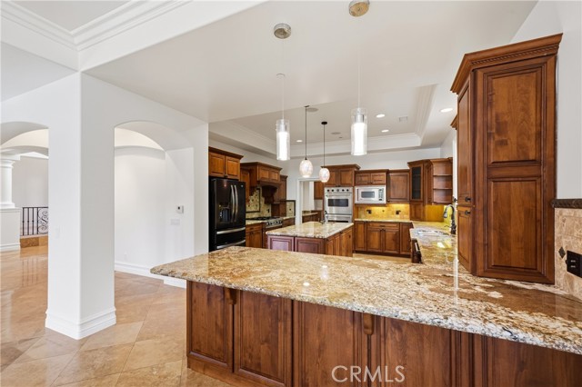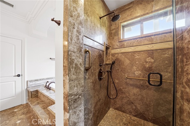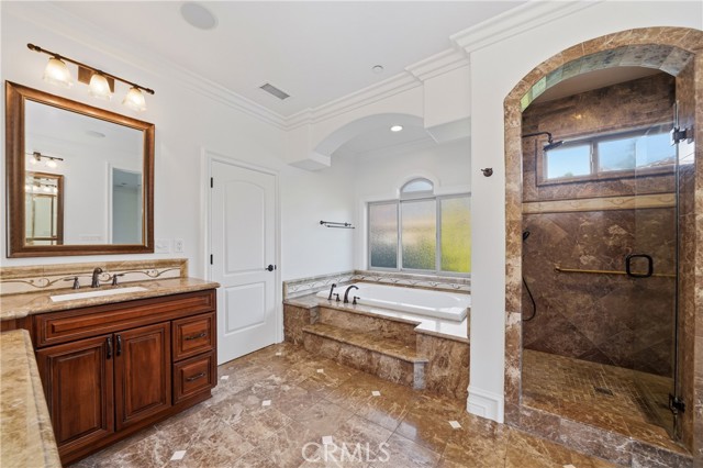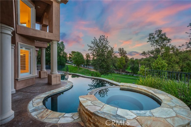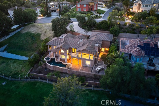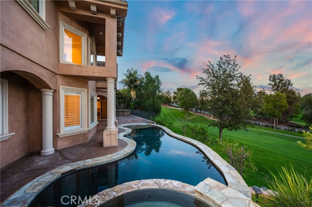 Welcome to 16127 Greens Court! A breathtaking custom estate gracefully positioned near the prestigious Western Hills Golf Course in the heart of Chino Hills. Built in 2008 with exceptional craftsmanship, this distinguished residence offers approximately 4,711 square feet of refined living space, featuring five spacious bedrooms and five-and-a-half bathrooms, all set on an expansive 16,000 square foot lot. Upon entry, you are welcomed by dramatic high ceilings and an open-concept design that exudes sophistication. Marble and hardwood flooring, granite and stone finishes, custom columns, detailed crown and base molding, and finely crafted cabinetry reflect the home’s meticulous attention to detail. Multiple French doors and two private balconies create a seamless indoor-outdoor flow while capturing picturesque golf course views. The gourmet kitchen is thoughtfully designed for both everyday living and elevated entertaining, complete with top-tier appliances, custom cabinetry, double ovens, a chef’s range, marble countertops, a generous center island, breakfast nook, walk-in pantry, and dedicated wine storage. The primary suite serves as a tranquil retreat, offering its own fireplace, sweeping golf course vistas, a jetted soaking tub, dual vanities, a spacious walk-in closet, and a separate glass-enclosed shower. Plantation shutters throughout further enhance the home’s timeless elegance. Additional features include: Private guest or mother-in-law quarters, Three custom fireplaces located in the primary suite, formal dining room, and family room, Dedicated executive office with built-in cabinetry, En-suite bathrooms in every bedroom, Professionally landscaped grounds with mature fruit trees and lush plantings, Three-car garage with built-in storage, Custom outdoor barbecue area, Heated saltwater pool and spa with jet features overlooking the golf course and so much more. This meticulously designed estate offers a rare combination of luxury, comfort, and enduring sophistication! Truly an extraordinary opportunity for those seeking an elevated lifestyle in one of Chino Hills’ most desirable settings.