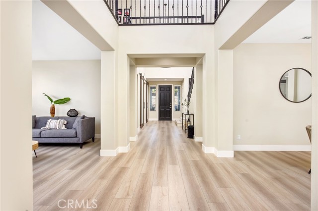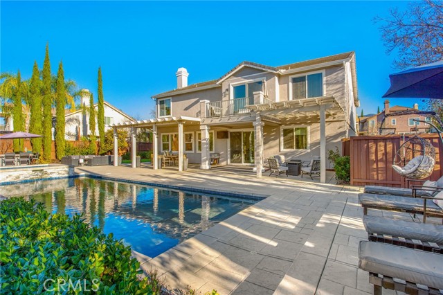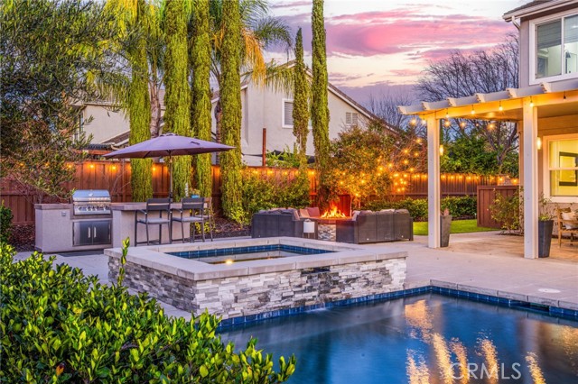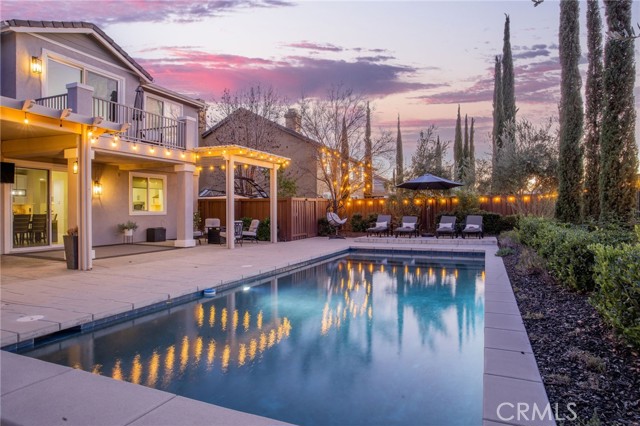 Welcome to Morgan Valley’s most desirable home- where quality, space, and lifestyle come together in a way that truly feels like HOME. Set on an oversized 0.29-acre lot with NO REAR NEIGHBORS, this beautifully upgraded estate offers 4,209 sq ft of modern living space and a private backyard oasis that reflects the Temecula lifestyle.The curb appeal immediately defines true pride in ownership. Inside, a grand formal entry, soaring ceilings, and wood-inspired flooring set the tone as your eye is immediately drawn through the home to views of the backyard oasis beyond, creating an immediate sense of openness and connection.The main level offers excellent flexibility with an oversized room currently used as an office, a full downstairs bathroom with walk-in shower-ideal for guests or extended family. A formal sitting room with an adjacent dining area strikes the right balance between hosting and everyday comfort. At the heart of the home is a stunning kitchen dressed in the most modern upgrades and opens directly to the oversized family room. This stunning kitchen includes custom white cabinetry,farmhouse sink overlooking the backyard, stainless steel appliances, oversized island, walk-in pantry, custom backsplash and lighting. Also enjoy built-in coffee bar, and a butler’s area complete with a wine fridge. The family room is filled with natural light and anchored by a cozy fireplace and large picture windows. Upstairs, a beautifully designed staircase leads to an oversized loft and 4 spacious bedrooms, including a junior suite with private bathroom and an additional guest bath.The primary suite is thoughtfully set apart as its own retreat offering generous space, relaxing sitting area, and west-facing private balcony- perfect for enjoying evening sunsets.The spa-inspired primary bathroom features large walk-in shower, separate soaking tub, dual vanities, and two oversized walk-in closets.The private backyard extends the living space with no rear neighbors-ideal for both everyday living and entertaining. A covered patio opens to a sparkling saltwater POOL AND SPA, outdoor kitchen, fire pit, and multiple seating areas. Additional highlights include an oversized turf side yard, RV/BOAT parking, PAID SOLAR, laundry with sink and storage, and a finished 3-car garage. Morgan Valley living- known for its exceptional schools, strong community and proximity to Temecula wineries, local conveniences, and more. This home is designed for the moments that matter most.