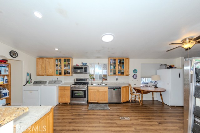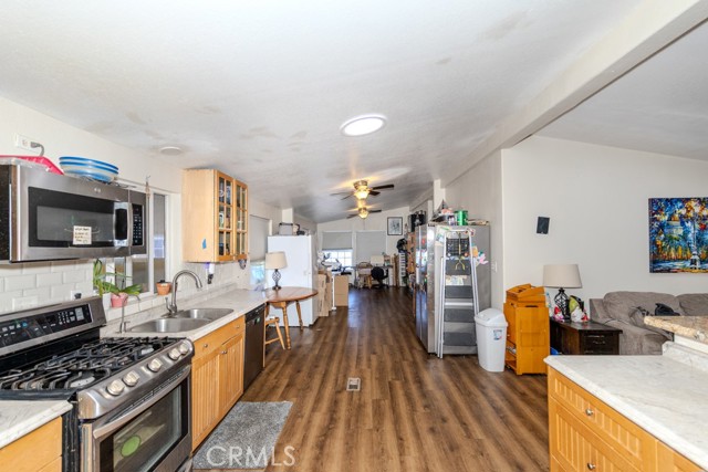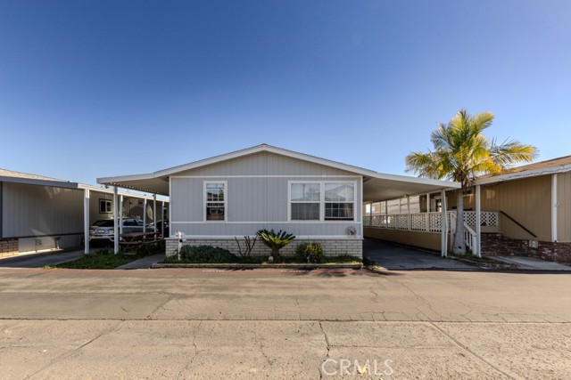 Set in Fountain Valley Estates at 9320 Talbert Ave in Fountain Valley, this updated 3-bedroom, 3-bath manufactured home with a bonus room offers 1,344 sq ft of single-level living. Built in 1996 and extensively improved, the home features a newer roof, interior and exterior paint, updated plumbing and electrical, and multiple interior upgrades completed between 2021 and 2024. The open concept floor plan connects the living area, dining space, and kitchen. The kitchen includes Formica counters, a new backsplash, wood shelving, and stainless steel appliances including a 2024 refrigerator, gas range, oven, microwave, dishwasher, and garbage disposal. An osmosis water system is connected to the kitchen sink and refrigerator. New lighting, switches, and ceiling fans were added throughout the home along with new faucets, baseboards, and hardware. The primary bedroom includes a custom wall unit in the closet and an attached bonus room suitable for a private office or seating area. The en suite bath features a remodeled vanity, mirrors, and a walk-in shower. All three bathrooms were updated with new showers, fixtures, and lighting. Additional improvements include new flooring and subfloors, two solar tubes for added natural light, new plumbing for the washer and dryer, and motion sensor lighting at the carport. This home includes a two-car carport and a storage shed. The property is connected to public utilities including gas, water, sewer, and electricity with central forced-air heating. Located near the clubhouse, the home enjoys access to community amenities at Fountain Valley Estates, a land-leased park with 192 home sites. Amenities include a large clubhouse with kitchen and TV area, heated pool and spa, pool restrooms, basketball court, enclosed dog park, on-site laundry room, car wash area, greenbelt, and on-site management. One small indoor pet is permitted with park approval. Six-foot fencing is allowed. A monthly land lease applies and park approval is required for residency. Fountain Valley Estates offers a convenient suburban location near major destinations. Approximately 2 miles to Mile Square Regional Park, 4 miles to Bella Terra, 7 miles to Huntington Beach State Beach, and 8 miles to South Coast Plaza. Close to local parks, schools, shopping, restaurants, and transportation routes with the cross street at Talbert Avenue.