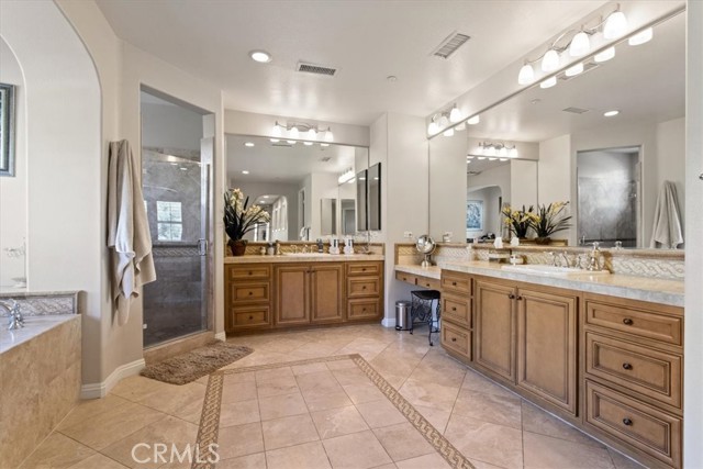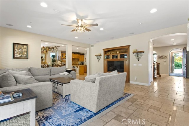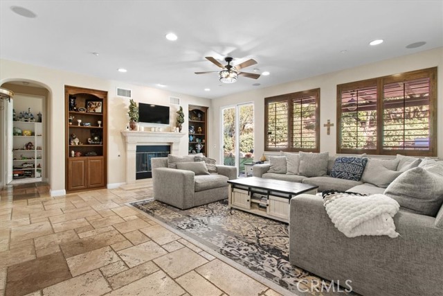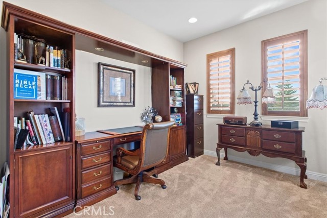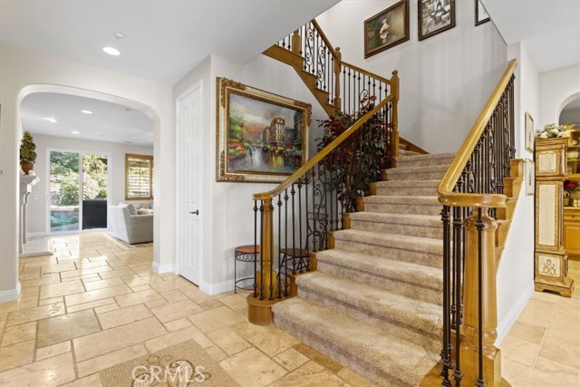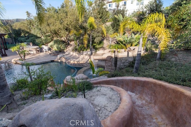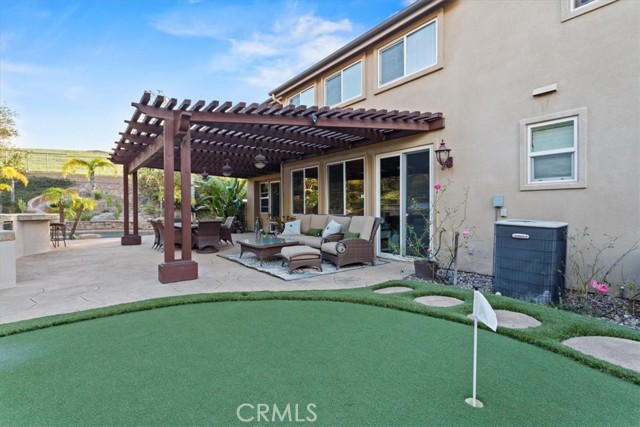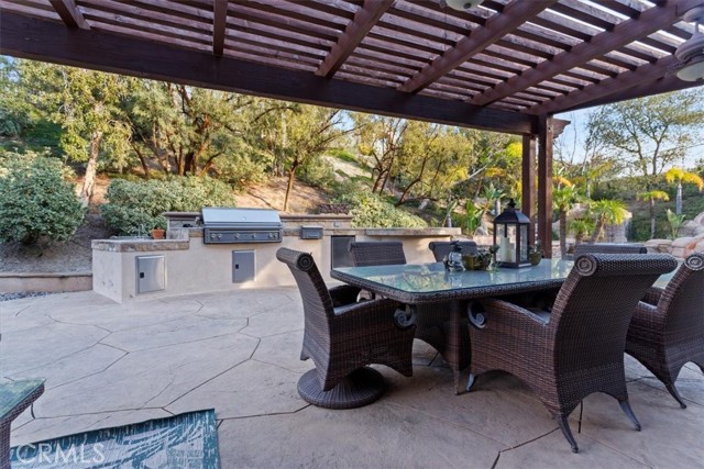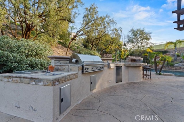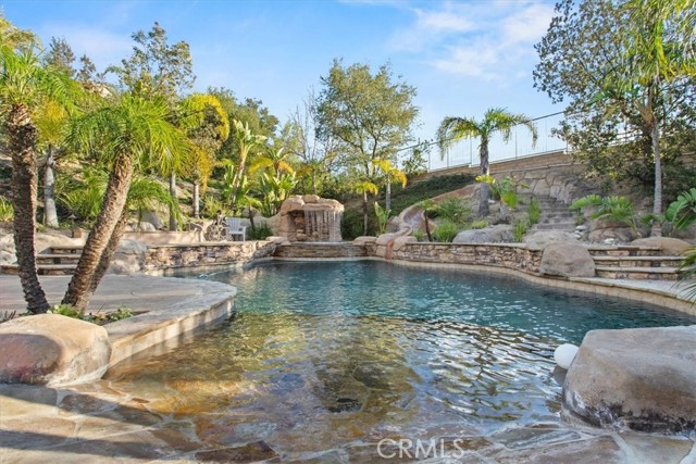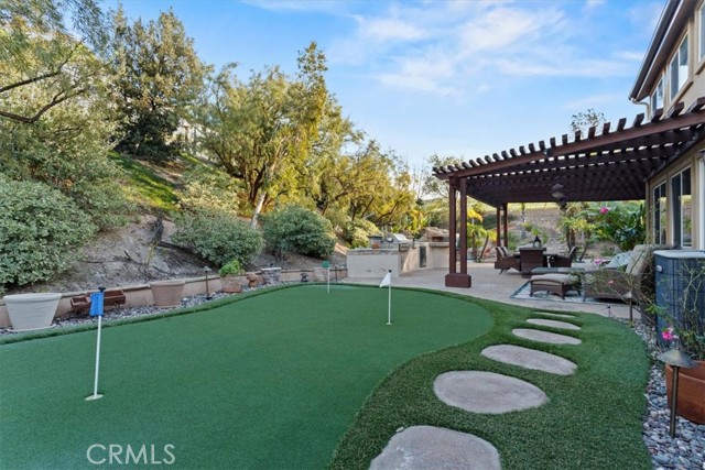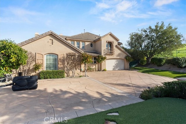Welcome to Castlewood at Big Sky, one of the area’s most coveted communities—where wide-open spaces, dramatic mountain scenery, and serene natural beauty create a truly special place to call home. Backed by the stunning presence of Whiteface Mountain, this peaceful enclave offers the perfect blend of privacy, luxury, and Southern California indoor-outdoor living. Tucked away at the end of a quiet cul-de-sac and up a long private driveway, located next to open space, this exceptional property showcases breathtaking mountain and valley views, 5 spacious bedrooms, 4.5 baths, and an entertainer’s backyard that rivals a private resort. From the moment you arrive through the gated courtyard entry, you’ll appreciate the thoughtful layout—Inside, an expansive and light-filled floor plan unfolds. The formal living room, anchored by a cozy fireplace, opens to a charming courtyard with a tranquil fountain—setting the tone for relaxed elegance. A warm and inviting family room features its own fireplace, built-in entertainment center, and views of the sparkling pool beyond. Perfect for hosting, the elegant formal dining room flows seamlessly into the sun-drenched gourmet kitchen, complete with granite countertops, abundant cabinetry, a center island with sink, walk-in pantry, and a full suite of stainless steel appliances—truly a chef’s dream. The main level also includes a bedroom with a private bath, a laundry room, and a convenient powder room for guests. Up the grand staircase, the luxurious primary suite awaits—your personal retreat. This expansive haven includes a fireplace, sitting area, oversized walk-in closet with built-ins and pull down attic access with an abundance of storage area, and an additional ~250 sq ft bonus space ideal for an office, nursery, or fitness room. The spa-like primary bath completes the experience. Two additional ensuite bedrooms, a versatile loft, and a bonus room overlooking open space offer endless flexibility for today’s lifestyles. And then… the showstopper backyard. This is Southern California living at its finest: a resort-style pool and spa with rock waterfall grotto, swaying palm trees, BBQ island, lush lawn for play, and even a putting green—all beautifully set against a natural backdrop. Solar? Yes—owned with back-up batteries. There is also ample parking with a 2 car garage and a one-car garage with an attached room ideal for a hobby room or storage. Residents of Big Sky enjoy miles of walking and hiking trails.