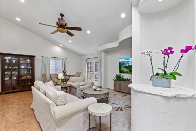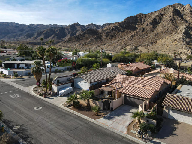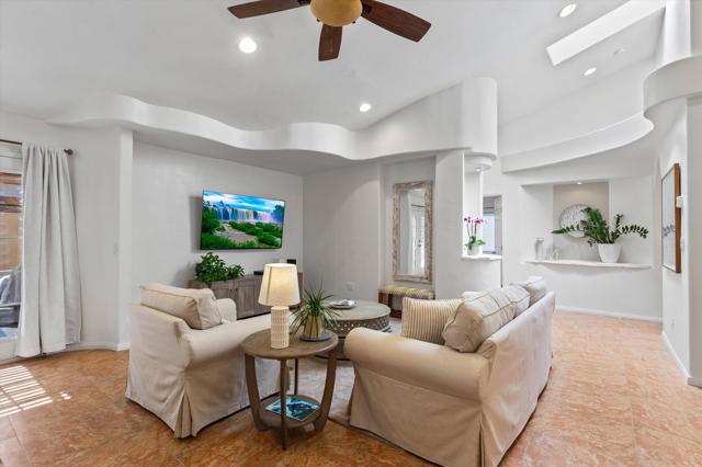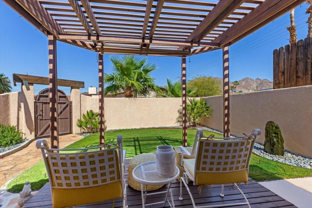 Perched in the highly sought-after upper La Quinta Cove, this impeccably kept 3 bedroom, 2.5 bath home delivers everything you came to the desert for and then some.Step inside to soaring vaulted ceilings and sunlight streaming through a skylight, creating an open, airy sanctuary that feels both spacious and inviting. French doors connect the primary bedroom and living area directly to your private pool and covered back patio, where a ceiling fan and misting system make even summer afternoons effortless. It's indoor / outdoor living at its finest.But here's what sets this home apart: a rare dual patio design that gives you options. Host poolside gatherings under the shade of your back patio, or slip away to the tranquil enclosed front courtyard for your morning coffee spot, complete with a bubbling fountain and front row seats to sunrise painting the Santa Rosa Mountains in gold. Hummingbirds included.The kitchen is ready for your rhythm, with granite countertops and plenty of storage. A versatile bonus room opens to the front patio through dual French doors which is perfect as a home office, art studio, or sun-drenched breakfast nook. Recent upgrades mean peace of mind: fresh interior paint, a new HVAC system, and updated appliances including the dishwasher, range, refrigerator, and disposal.Outside, low maintenance desert landscaping with river rock and mature palms was designed for exactly this climate: beautiful, sustainable, and worry-free.And your location? Unbeatable. Hiking trails are steps from your door. Old Town La Quinta's acclaimed restaurants and weekly Farmers Market are minutes away. Add world class golf, the Indian Wells Tennis Garden, and Acrisure Arena to your backyard, with Palm Springs and Indio's legendary music festivals just 30 minutes out.This isn't just a home. It's your front row seat to the La Quinta Cove lifestyle.Schedule your private showing today.