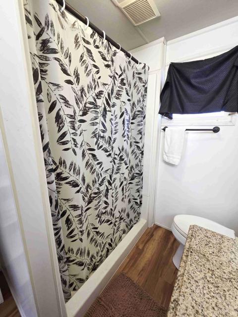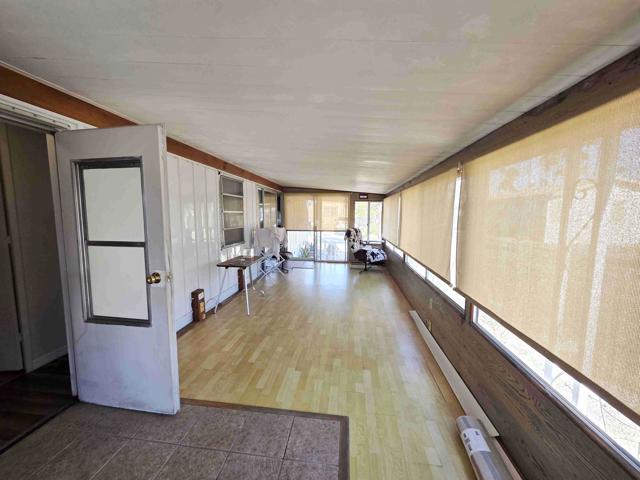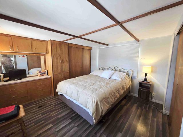 Welcome to 106 Coyote, in the Royal Palms Manufactured Home Community, a 55-or-better community. This 612 square foot, one-bedroom, one-bath mobilehome with an approximately 268 square foot enclosed deck has been beautifully upgraded with today's tastes and colors in mind. The house is set on a corner lot with low-maintenance landscaping. The home's entrance is via an enclosed deck on the eastern side. Sliding glass doors open from the deck into a beautiful great room with wood-look laminate floors and beamed ceilings. The open-concept kitchen features ample cabinetry, a gas wall oven, and a four-burner cooktop. At the end of the short hallway is the remodeled bathroom with a new vanity and a fiberglass walk-in shower. The home's bedroom is at the end of the hall, complete with two closets and a lovely built-in dresser. The space rent for 106 Coyote is $893 monthly, and park approval is required.