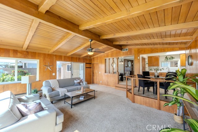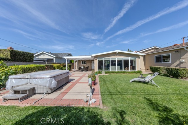 Single-story 4-bedroom home with expanded family room, oversized lot, covered patio, and extended garage workshop space. 2834 West Keys Lane, Anaheim, CA 92804 is a single-family residence offering approximately 1,988SF of living space on a 7,251SF lot in west Anaheim with no HOA. From the curb, the north facing Cinderella home shows manicured landscaping, a wide driveway, and an attached two-car garage with a front-facing door. What sets this property apart is the added family room, a rare feature for many homes of this era that significantly expands the living footprint while still preserving a generous backyard. The result is a larger-than-average interior and lot-size combination that is difficult to find in this neighborhood. Inside, the layout offers four bedrooms and two bathrooms with an open flow between the living areas. The living room includes a fireplace and connects to the dining area and kitchen. The expanded family room features beamed ceilings and a new ceiling fan, providing substantial additional square footage for gatherings or flexible use. Natural light fills the home through multiple windows, a skylight in the hallway, and an additional skylight in the kitchen, and the functional floor plan makes efficient use of space throughout. The kitchen opens to the main living areas and includes ample cabinetry, counter space, and a breakfast nook area. An interior laundry room adds convenience with direct access inside the home. All four bedrooms are located on the main level including the primary bedroom. Each bedroom includes a new ceiling fan and mirrored closet doors. Both bathrooms are positioned for practical access from the living areas and bedrooms. The attached garage is another standout feature. In addition to accommodating two vehicles, the garage includes an extended workshop area offering space for equipment or hobby use without sacrificing parking capacity. The backyard remains spacious despite the interior expansion. With approximately 7,251 square feet of lot size, there is room for patio seating, outdoor dining, and lawn area. A large covered patio structure supports indoor-outdoor use and the private above-ground spa is in working condition. A detached storage shed provides additional space for tools and equipment. The yard layout provides flexibility for future customization. This detached single-family residence combines single-story living, expanded square footage, covered outdoor space, and an oversized lot with no HOA.