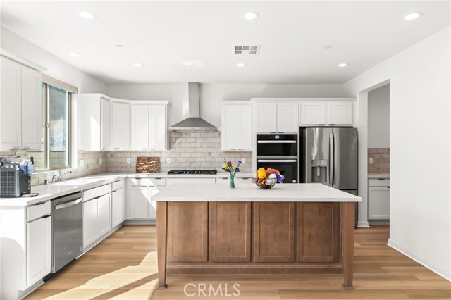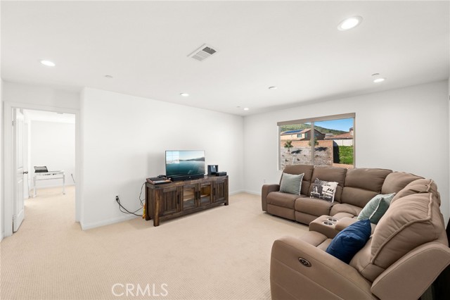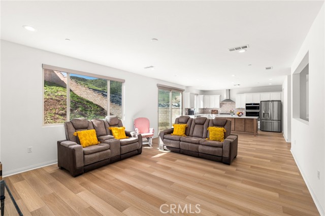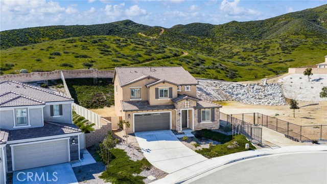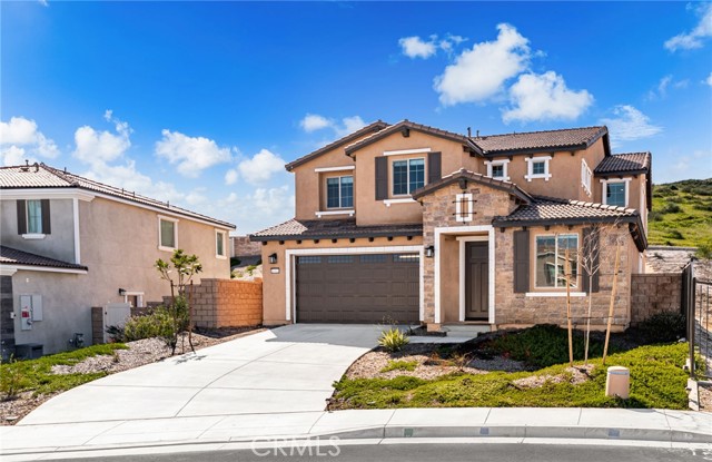 Welcome to this stunning two-story home located in one of Menifee’s most desirable communities. Built in 2024, this beautifully designed residence offers 4 spacious bedrooms, 3 full bathrooms, and 1 half bath with approximately 3,410 square feet of elegant living space. The main level features a highly functional open-concept layout, including a convenient downstairs bedroom with full bath, ideal for guests or a private home office. The chef’s kitchen is the heart of the home, showcasing a large executive island, upgraded cabinetry, and generous counter space, perfect for entertaining and everyday living. Upstairs, enjoy a versatile loft area that can be used as a family room, media space, or play area. The luxurious primary suite offers ample closet space and a beautifully appointed bathroom. Additional bedrooms are well-sized and filled with natural light. This home also includes premium upgrades throughout such as recessed LED lighting, modern finishes, and upper and lower cabinets in the laundry room. The spacious backyard provides endless possibilities for outdoor living, future landscaping, or a custom entertainment area. Ideally located near schools, shopping centers, dining, parks, and with easy access to major freeways. This exceptional property offers the perfect combination of space, style, and location... a true must-see for today’s buyers. Seller is motivated. This opportunity will go fast!!!