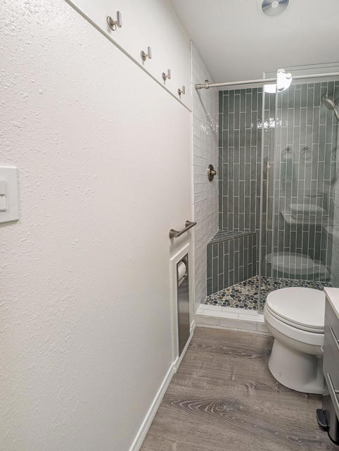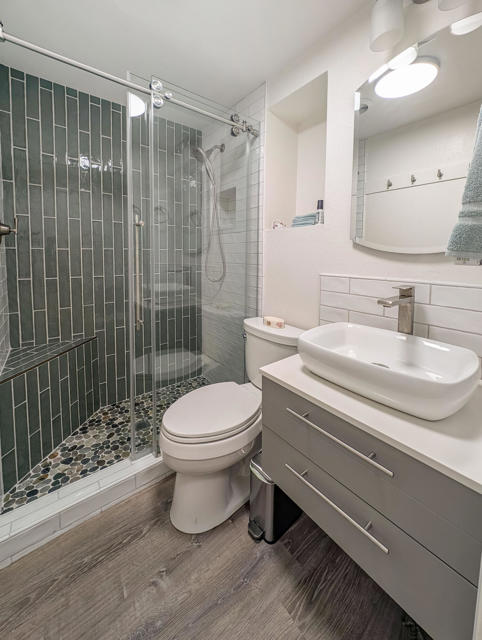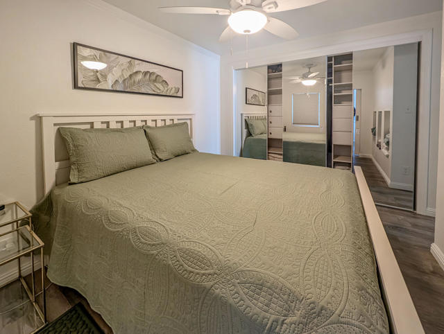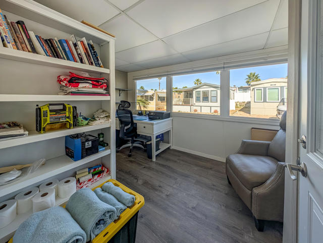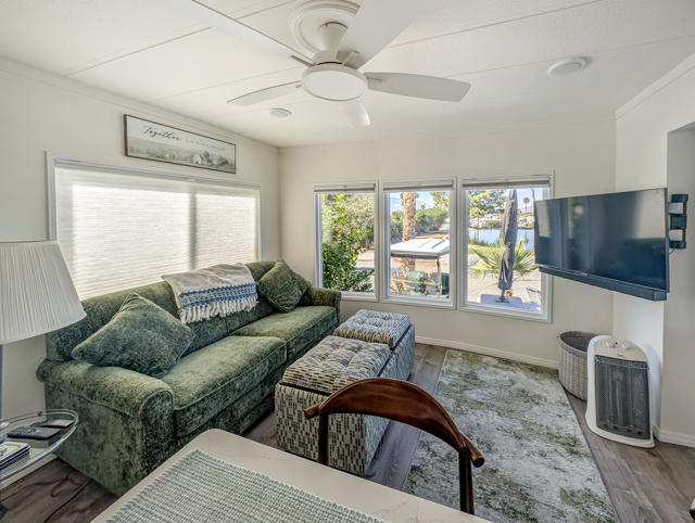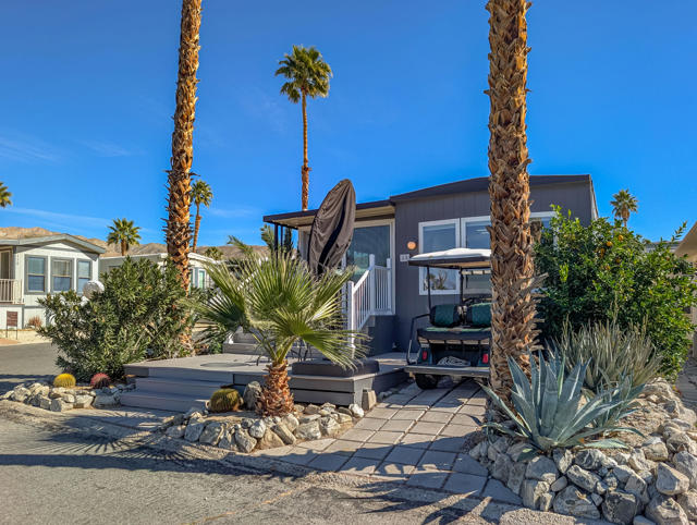 Enjoy breathtaking views from this beautifully renovated home of approximately 750 sq. ft., featuring one bedroom, one bathroom, and a spacious California Room. Situated right across from the Clubhouse at the center of all resort amenities, this recently updated residence boasts new flooring, fresh interior and exterior paint, quartz countertops, and modern appliances--including a dishwasher, microwave, range, and garbage disposal. You'll find a convenient laundry area equipped with a new stackable washer/dryer, while the bathroom impresses with upgraded finishes and a stunning tile and stone shower that brings a spa-like feel. Step outside to a charming deck surrounded by lush, mature landscaping--perfect for relaxing or enjoying the view. Additionally, there is private paved parking for 1 car, a golf cart parking spot and a large shed for storage. Located in the prestigious 55+ Caliente Springs Resort, you'll have access to amenities such as mineral hot spring pools and spas, a state-of-the-art fitness center, a 9-hole golf course, 8 pickleball courts, and much more. Join this vibrant, welcoming community and make lasting friendships. Please note: the lot is not included; space rent is $811.
