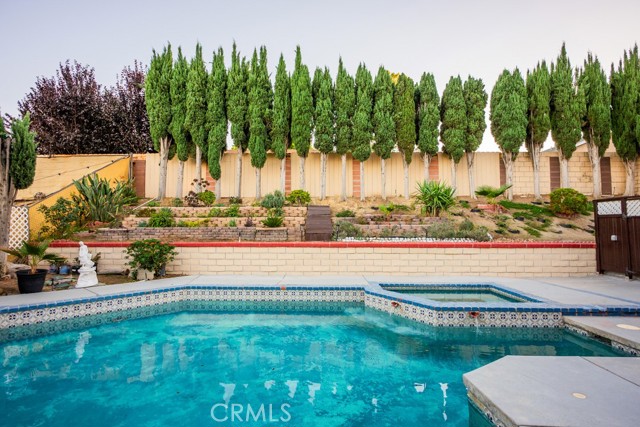 HURRY UP BEFORE IT'S GONE! NEW HVAC SYSTEM!! Downstairs Bedroom and bathroom two story home in the highly desired Monteverde tract of Valencia, a rare gem in prime location! This beautifully upgraded residence sits on a private elevated lot surrounded by mature cypress trees, offering full backyard privacy and a peaceful atmosphere. Inside, you'll find a spacious living room with a classic brick fireplace and large diamond-paned windows that fill the space with natural light. The upgraded kitchen features granite countertops, stainless-steel appliances, rich cabinetry, and a charming dining area overlooking your sparkling backyard oasis. Upstairs, the primary suite offers dual French door to a private balcony, a walk-in closet, and a dual-sink vanity with a standing shower. Additional bedrooms are spacious and bright, with plenty of flexibility for family or guests. The entertainer's backyard is a true escape — featuring a sparkling pool and spa. The front garden, elevated above street level, creates a sense of tranquility and total privacy from the moment you arrive. With a new HVAC system, no HOA or Mello Roos, and proximity to top schools, parks, and restaurants, this home offers the best of Valencia living. Make this your new home before it's gone!