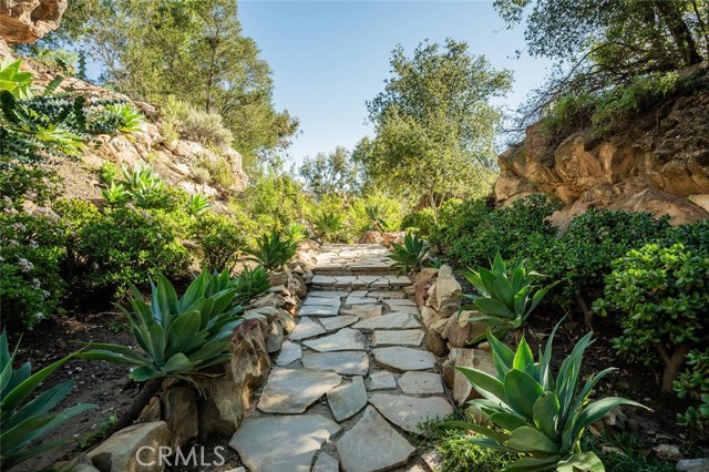 Set behind gates on a private 1.46-acre estate, this architecturally considered residence offers a rare sense of calm, scale, and connection to its surroundings. Here, architecture and landscape are composed as one—large expanses of glass trace the movement of the sun, generous eaves temper light and heat, and transitions from exterior to interior unfold with a sense of quiet procession from public approach to private retreat. Designed by Blair Ballard, the home reflects a disciplined approach to livability rather than spectacle. Windows are thoughtfully placed to orient daily rhythms, circulation feels intuitive, and indoor and outdoor spaces flow naturally. Materials are warm and enduring, creating interiors that feel grounded, calm, and timeless. The formal living room is defined by dramatic walls of glass that frame garden and canyon views, while transom windows throughout introduce architectural depth and natural light. Wide-plank hickory floors, curated lighting, and a refined neutral palette establish a cohesive and elevated interior environment. The chef’s kitchen serves as both functional centerpiece and design statement, appointed with bespoke cherrywood cabinetry, marble countertops, designer appliances, and sculptural pendant lighting. Spa-caliber bathrooms feature marble finishes and Hansgrohe fixtures, while the primary suite offers privacy, comfort, and dual walk-in closets. Recent improvements include a new HVAC system, tankless water heating, upgraded electrical infrastructure, an updated fireplace, new picture windows, and a newly installed roof. Outdoor living is equally intentional. Porcelain-clad patios extend the home into the landscape, complemented by a covered outdoor kitchen, sculptural soapstone fire pit, and PebbleTec-finished pool. Meandering stone paths, mature fruit trees, and layered gardens create moments of discovery throughout the grounds. A climate-controlled three-car garage with epoxy flooring, substantial storage, and additional guest parking complete the offering. Located within the prestigious guard-gated community of Bell Canyon and served by the highly regarded Las Virgenes School District, this is a residence defined not by excess, but by intention—architecture, landscape, and lifestyle aligned for living well. Assessor data shows property as 3BR, 3BA, 2,291SF. Previous appraisal measurement lists 3,352 square feet, including a 2,706-square-foot main home and 646-square-foot guest unit. Buyer to verify.