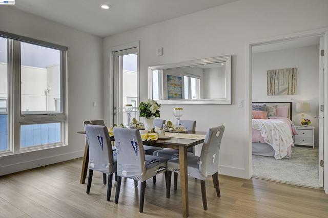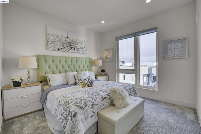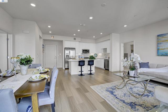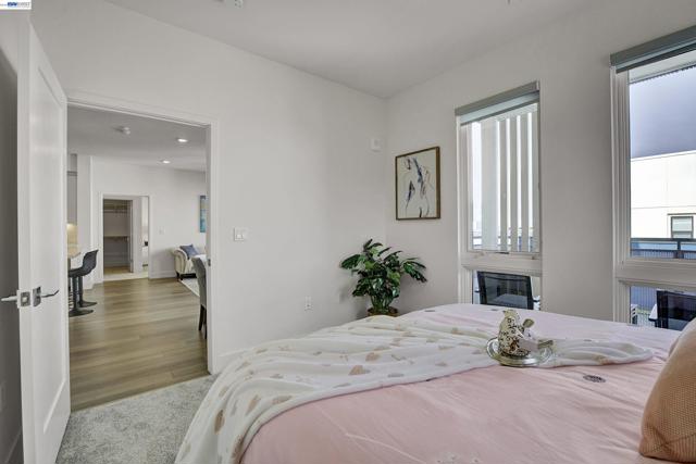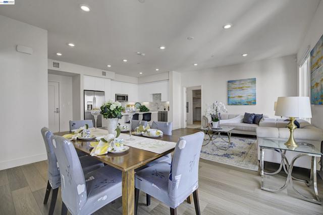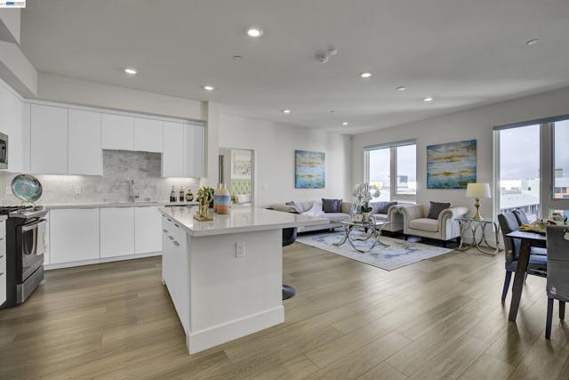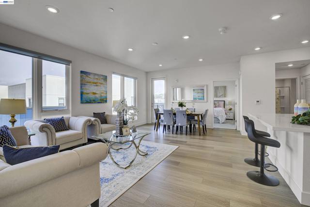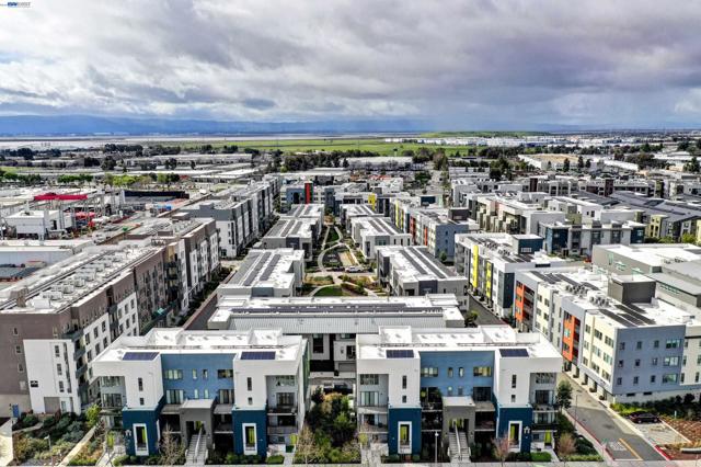 Bright and modern 2BR/2BA home located in the desirable Innovation community. This light-filled residence features an open floor plan with abundant natural light and neighborhood/hill views. The chef’s kitchen includes ceiling-height cabinetry, quartz island, built-in stainless steel appliances, and gas cooktop. Bedrooms are positioned on opposite sides of the living area for added privacy—ideal for guests or a home office setup. The spacious primary suite offers a large walk-in closet and en-suite bath. In-unit washer and dryer included. Secure garage with 2-car parking and additional storage. HOA covers water, gas. Community amenities include clubhouse, fitness center, pool, and BBQ area. Walking distance to Lila Bringhurst Elementary, parks, BART, shopping, dining, and major employers with easy freeway access. Move-in ready and perfectly located for comfort and convenience.