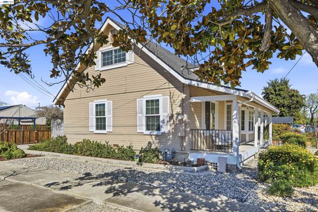 Charming and inviting 3 bedroom, 1 bath home featuring an updated, spacious bathroom and a warm, cozy kitchen. Two downstairs bedrooms with original hardwood floors are a delight. The newer HVAC and newer windows throughout the house are an added bonus. Enjoy indoor, outdoor living with a peaceful covered backyard patio, perfect for relaxing or entertaining. The covered front porch spans the full width of the home, offering a welcoming space to unwind while overlooking the beautifully updated, drought-resistant, low-maintenance, and Award Winning front yard. The property also includes a one-car garage with laundry and additional storage, plus a fully fenced backyard with a patio area, garden plants, and a versatile outdoor shed, ideal for extra storage or a gardner’s workspace. As a bonus, enjoy your very own lemon tree in the side yard, providing fresh fruit right at home. This home blends comfort, functionality, and charm, and is only minutes to historic downtown Livermore. Perfect for a first time homeowner, investor, or someone looking to downsize. Don’t miss out on this Livermore Charmer!