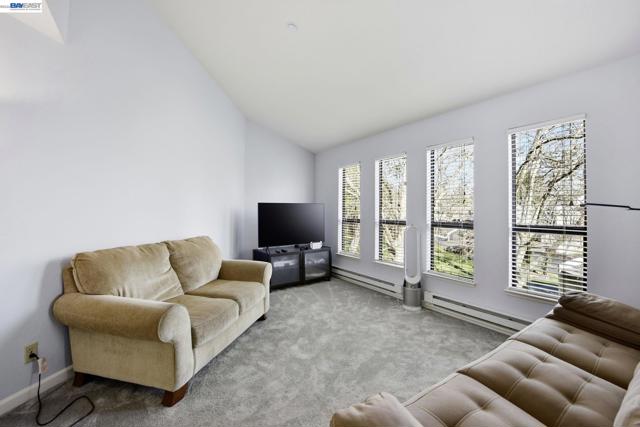 (Open Saturday and Sunday 1-4) This bright and inviting 2 bedroom 1 bathroom condo in the highly sought after Fremont Villas. The top level unit boast high ceilings and ample natural light. recently completed new carpet, and paint. There is plenty of parking for all your guests and a carport under the building. The HOA offers a sparking pool and a clubhouse, meticulously maintained green areas, and water, sewer, and garbage services. It is centrally located and it is a quick walk to BART, to parks, Lake Elizabeth, grocery stores, and the Fremont Hub