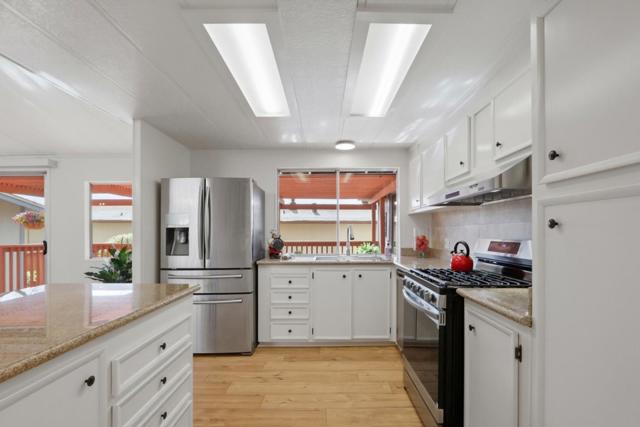 This is the home you have been dreaming about. This gorgeous 3-bedroom 2-bath manufactured home features a two-car garage & is located in the 55+ age-restricted Mountain Springs Mobile Home Park. Come enjoy the serenity of this home nestled in the quiet valley below Communication Hill with a view of the surrounding hills. Walk up the sidewalk and open your gate to behold a private fenced yard with a large wood deck, pergola and low maintenance landscaping. This home is upgraded with newer roof, large skylights, newer heater, & hot water heater. The inside laundry room includes a separate office space. The spacious living/dining area features new LVP floors & vaulted ceiling. The kitchen includes granite counters & stainless-steel appliances. The huge primary bedroom offers a large closet, ceiling fan, & sliding door opening to the deck & yard. The primary bath has garden tub & separate shower. The secondary bath features a new walk-in shower & new vanity. Remember the neighborhood you grew up in as a kid? This is that neighborhood. Come see for yourself. Rent-controlled space rent is $1404.82/month.