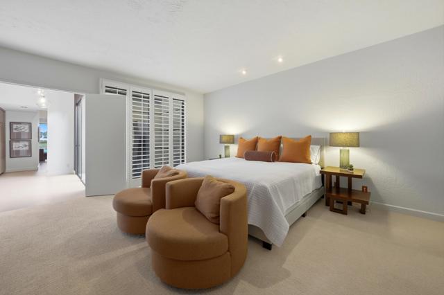 This model-perfect home is perfectly positioned in PGA West on the 18th fairway of the coveted Stadium Course. This stunning single-level Legends 40 condo blends spacious indoor living with breathtaking outdoor views, creating a lifestyle of resort-like comfort. This meticulously maintained and beautifully remodeled condo has 3-bedroom, 3.5-bath offers over 3,000 sq ft of beautifully appointed living space, thoughtfully designed for entertaining and everyday ease. Upgraded with modern touches throughout. The wall was opened from the dining room to the family room and the laundry room was expanded. The open floor plan features vaulted ceilings, a bright atrium entry, and panoramic sightlines to the golf course and sparkling lake providing a stunning view. Step inside to discover an inviting great room with abundant natural light and a sleek fireplace, flowing seamlessly to a dining area and gourmet kitchen. The kitchen showcases rich cabinetry, polished stone countertops, a central island, and premium appliances -- ideal for both casual meals and chef-level entertaining. Sliding glass doors frame the lush outdoor oasis, seamlessly blending indoor and outdoor living Retreat to the generous primary suite, complete with a well-appointed ensuite bath and serene views--an ideal sanctuary after a day on the links. Two additional bedrooms and baths provide comfort and flexibility for guests or family. Additional community amenities including 24-hour gated security and proximity to renowned golf, the American Express tournament, dining, and community pools Situated in La Quinta's scenic desert landscape, this exceptional property offers both tranquility and access to world-class recreation. Offered designer furnished per inventory.