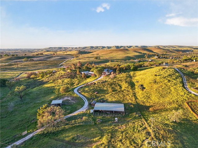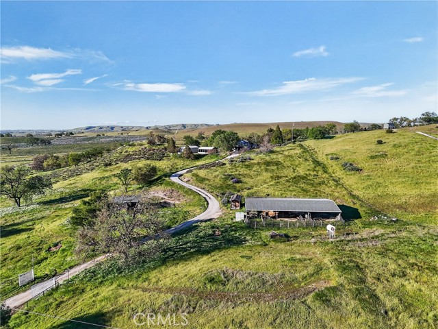 Wake up to wide open skies, rolling hills, and the kind of quiet that reminds you why you love living in Paso Robles wine country. 3476 Redtail Place offers peaceful country living on more than 11 scenic acres, where you can enjoy both sunrise and sunset views from your own private slice of countryside. With nearly 3,000± square feet of living space, there is room to spread out and create the lifestyle you envision. The living room welcomes you with polished concrete floors and soaring high ceilings that enhance the sense of openness and natural light. Nearby, the spacious dining room is ready for gatherings, celebrations, and everyday meals with a view. The kitchen features white cabinetry and updated stainless steel appliances, positioned conveniently near the main living areas. Just beyond, you will find the laundry area, garage access, a guest bath, and a dedicated office space that works well for remote work or managing daily operations on the property. The primary suite is located on the main level and offers generous proportions, an en suite bath with dual sinks, and a walk in shower. It is a comfortable retreat with space to personalize over time. Upstairs, two additional bedrooms offer a unique open connection to one another, creating flexible space for shared living, a creative studio, or a playroom layout. One of these bedrooms includes its own full bathroom suite, adding versatility for guests or extended living arrangements. Step outside and experience the true potential of this property. 2 pole barns, 20x30 shop with concrete floor and 220 power, fenced pastures and additional sheds provide room for equipment, hobbies, livestock, or 4H projects. With over 11 gently rolling acres, there is ample space for animals, gardens, and enjoying the peaceful surroundings. The home reflects its rural setting and offers the opportunity for thoughtful updates, allowing the next owner to shape it into something truly their own. Leased solar is in place, contributing to energy efficiency. If you have been dreaming of wide open space, scenic views, and room to grow, 3476 Redtail Place invites you to explore the possibilities and imagine life here. Call today!