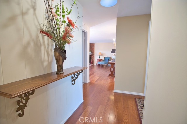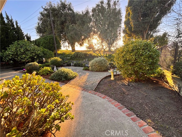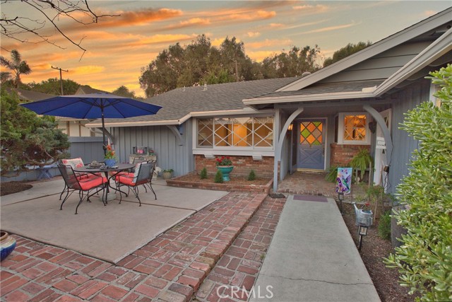 RARELY ON THE MARKET! THIS is the breath of fresh air you've been longing for! Located on the fairway of the 15th hole of Meadowlark Golf Course, sweeping panoramic golf course and sunset views can be yours from your very own backyard garden paradise. You'll feel like you're on an extended vacation every day yet living in a very special and peaceful home. This warm and welcoming, spacious, comfortable and well-loved home is truly a gem that will captivate you from the curb. SO CHARMING and thoughtfully curated! Entrance to this single level home is past the magnificent honey locust tree, up the cobbled brick steps and into the private, gated courtyard patio with covered brick porch. You'll be greeted at the vivid diamond windowed door and welcomed inside to the foyer. The East-facing, sunny kitchen windows overlook the courtyard. The updated kitchen features rich wood cabinetry with solid surface counters enhanced by a classic-style ornamental tile backsplash, a GE convection/microwave/wall oven and glass cooktop range, a long breakfast island and adjacent dining area with newer dual pane window view to the side yard. The large living room features a rustic brick fireplace with honed wood mantle and French doors leading to the professionally designed backyard garden retreat. More wonderful features include: Beautiful engineered wood flooring flowing from the entrance through the living room and hall, with deep plush carpeting in the bedrooms; gorgeous remodeled Italian-inspired bathroom with dual sinks in the hallway; 3 generous-sized bedrooms, including a large primary bedroom suite with upgraded en suite bathroom; a brand NEW (2026) 200 amp electrical panel; 50-year roof was replaced in 2007. SUPERIOR 92649 LOCATION within an easy distance to EVERYTHING, including shopping, retail, Award-Winning Ocean View Schools, Chris Carr Neighborhood Park; houses of worship, fantastic restaurants/eateries, entertainment, fitness centers, freeways & MORE! Huntington Harbour & Mall, the Bolsa Chica Wetlands & Preserve, the Pacific Ocean, Golden West College and Bella Terra outdoor shopping center are all within a few miles. You will LOVE this Home!