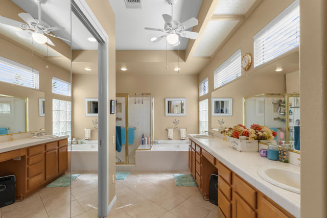 Perfectly positioned on the 17th hole of the San Gorgonio Golf Course, this Monaco model in Sun City Palm Desert offers the ultimate desert lifestyle. Featuring 2,432 sq ft, 3 bedrooms, and 3 full bathrooms, the home showcases generous living spaces, breathtaking golf course and mountain views, and seamless indoor-outdoor flow. Meticulously maintained and move-in ready, with dedicated golf cart space for true resort-style convenience. Located in one of Palm Desert's most sought-after 55+ communities, this is an exceptional opportunity with a highly motivated seller.
