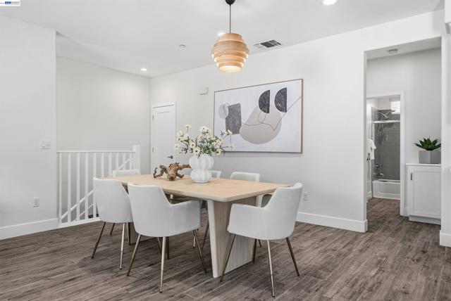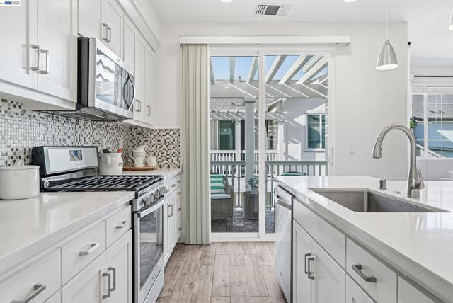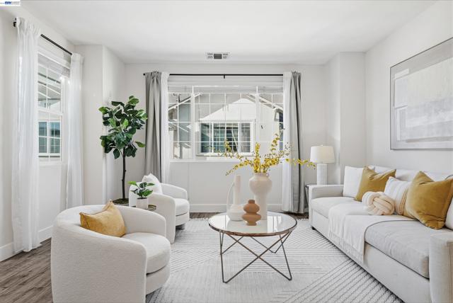 This corner-unit home is the perfect blend of contemporary style and thoughtful design. Spanning 1,490 square feet, it features 3B/2B and an open-concept layout, where the living, dining, and kitchen areas flow effortlessly. The kitchen is a true showstopper, complete with sleek stainless steel appliances, upgraded cabinetry, and a quartz island that doubles as a centerpiece for both cooking and conversation. The upgraded flooring throughout adds a touch of elegance, while fresh paint and brand-new window coverings give the entire home a polished feel. The primary suite and additional bedrooms provide plenty of space to unwind. A quiet spot to work? The bonus office area is ideal for remote work or creative projects. Outside, a covered deck on the main level offers a tranquil space to sip your morning coffee. Practical features abound: a side-by-side two-car garage, big storage space, and a brand-new washer and dryer. The location is not far away from Meta and Tesla, among other major employers. Bayshores residents enjoy a host of amenities like a park, kids’ playground and private clubhouse. Nearby Don Edwards San Francisco National Wildlife Refuge offers open space with trails and nature to explore. Easy access to the Dumbarton Bridge and I-880.