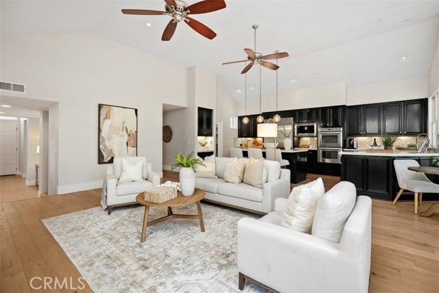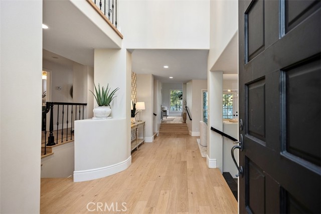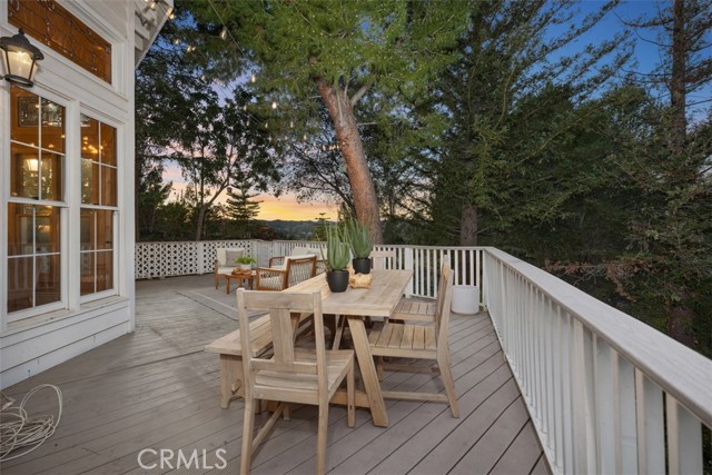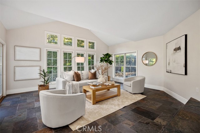 Nestled within the exclusive Village community of Coto de Caza, this 5-bedroom, 4.5-bathroom estate feels like a private retreat. Set against a backdrop of peaceful nature and private trails, the home provides a rare sense of seclusion and serenity. The entryway features newer hardwood flooring that flows seamlessly into the formal dining room and a gourmet kitchen. The open-concept kitchen features newer countertops, stainless-steel appliances, a large island with abundant seating, and a walk-in pantry. The kitchen transitions into a spacious family room, featuring a signature stone fireplace. The family room overlooks the outdoor patio with views of nature, perfect for indoor-outdoor living. The main level is complete with a separate living room with stylish stone flooring, a laundry room, and an upgraded half-bath. Ascend upstairs to the second level, featuring the private primary suite with a relaxing fireplace and balcony area perfect for morning coffee. Enjoy the spa-like primary bathroom complete with dual-sinks, a jetted tub, and a walk-in shower. Three additional rooms and two bathrooms complete the upstairs. At the lower level of this home, you will find a large media-room with Newer Carpet and recently Painted, complete with a projector. Enjoy an additional bedroom with a recently Remodeled Full Bathroom featuring Newer Vanity and Newer Shower. The lower level features a private entrance, providing an ideal layout for multi-generational living or a secluded guest wing. This floor extends to a dedicated balcony, offering an additional outdoor area for entertaining against a scenic backdrop. Complete with a 3-Car Garage and Solar. Offering the ambiance of a mountain retreat, this home is a rare opportunity to own a true daily escape.