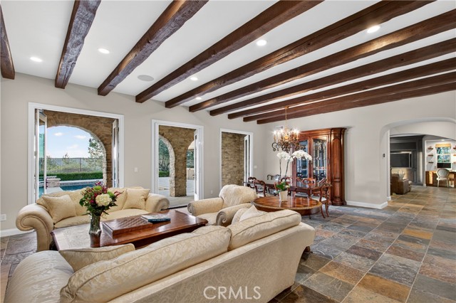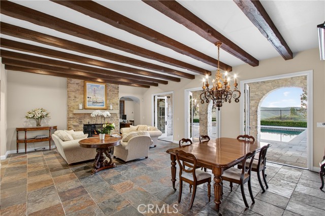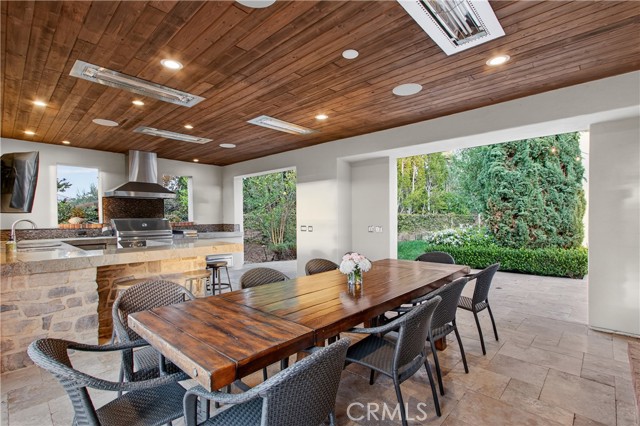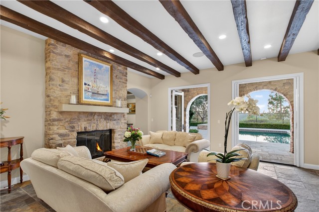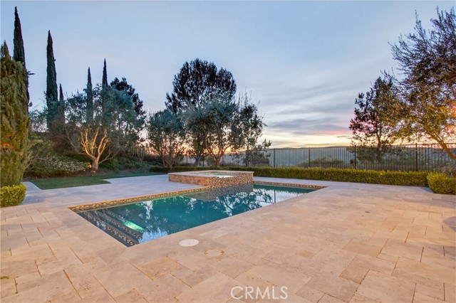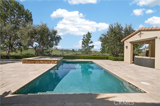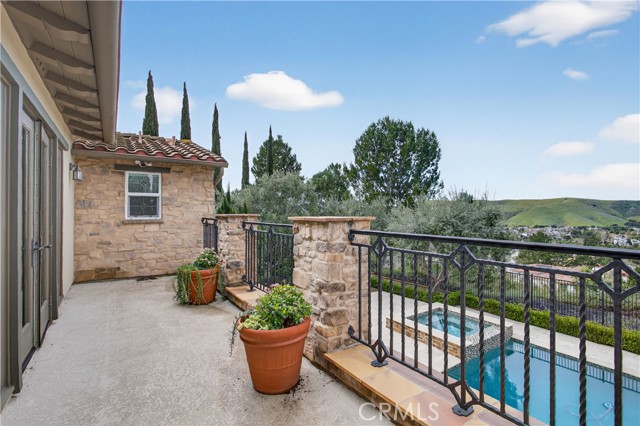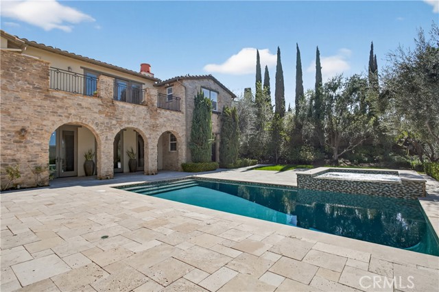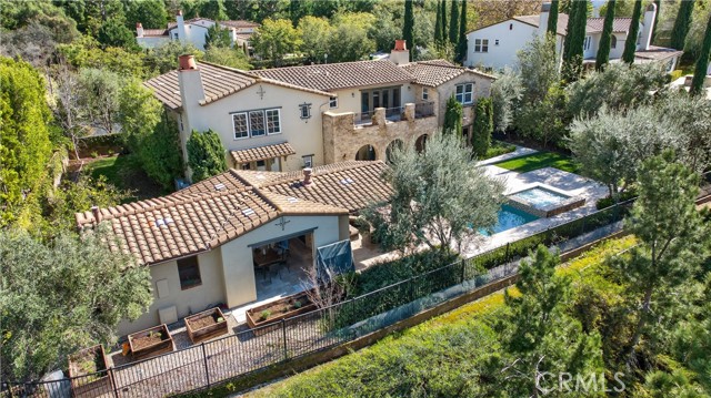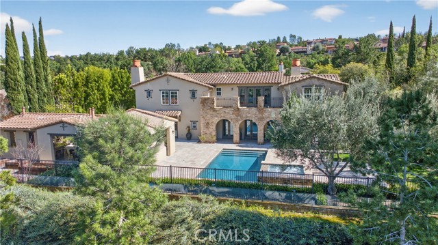 Absolutely an Entertainer’s Dream! Welcome to 21 Ali Lane, where indoor and outdoor living blend seamlessly on an expansive 18,000 sq ft lot that offers privacy and stunning views. Located in the prestigious Covenant Hills, this remarkable 5-bedroom, 5-bath home features exceptional upgrades and refined craftsmanship. Upon arrival, a private courtyard with a cozy fireplace warmly greets you. Inside, be captivated by the elegant beamed ceilings and a wall of French doors that fill the space with natural light and showcase breathtaking views. The open floor plan includes a main-level office with picturesque views and an ensuite bedroom—perfect for guests or family. At the heart of the home is a chef’s dream kitchen, equipped with a prestigious French La Cornue Range, a new Sub Zero refrigerator, a new Wolf oven and microwave, and Bosch dishwashers. The spacious center island, walk-in pantry, and a charming kitchen nook overlooking the courtyard create an inviting gathering space. The kitchen seamlessly flows into the expansive family room, featuring a fireplace, built-ins, and a bar area with a wine fridge. Upstairs, discover the luxurious primary suite, complete with a large walk-in closet and a spa-inspired bathroom featuring a walk-in shower, jetted tub, and private balcony offering breathtaking sunset views. Three additional bedrooms and a well-appointed laundry room boast exquisite Richard Marshall hardwood flooring. The secondary bedrooms include one ensuite and two sharing a convenient jack-and-jill bathroom. Designed with efficiency and convenience in mind, this home boasts a new energy-efficient HVAC system, a tankless water heater, a water softener, a hot water circulation system, a whole-home Sonos system, security features, and smart technology. The expansive backyard is a true entertainer’s paradise, facing west for unrivaled sunset views. It includes a large pool, hot tub, and an impressive outdoor California room designed for luxurious outdoor living and dining. Complete with a full outdoor kitchen, a two-sided fireplace, sound system, televisions, and heating, it’s the ultimate gathering spot. The yard also features raised garden beds, fruit trees, and ample space for a sports court or batting cage—an idyllic playground for all ages. Nestled within the guard-gated community of Covenant Hills, residents enjoy access to award-winning schools, parks, inviting pools, scenic trails, and the renowned amenities of Ladera Ranch. Don't miss this one!