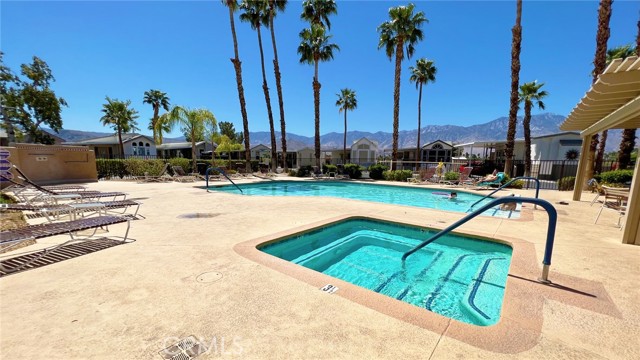 Don't miss this almost brand new park model, priced to move in the highly sought after 55+ Seasonal Living "Desert Shadows RV Resort"! You Own Land! Grant Deed Lot with Water, Cable/Internet, Trash, and common area included in HOA! This unit is in great condition. Steps to the pool, jacuzzi and facilities! This is a MUST SEE! Amazing amenities in this fabulous oasis! 2 large & well-maintained clubhouses plus 3 additional satellite clubhouses, An indoor pool with a large spa and sauna, An olympic-length (unofficial width) lap pool, A total of 6 pools, 5 spas and 3 saunas, Sunken, lighted tennis courts, 8 Pickle-ball courts, An indoor shuffleboard pavilion, 16,000-square foot San Jacinto room with floating hardwood dance floor, and a professional stage, plus a large kitchen, A 3,000-square foot “Our Gang” party room and lounge with a giant fireplace and kitchen, A huge party terrace with mountain views, A fully equipped fitness center, A dance studio, Library, Billiards room, Horseshoe pits, Several laundries, restrooms and bath facilities, Card & hobby rooms with Pottery Kiln, A putting green, Organized fitness activities, Daily activities including dances, dinners and entertainment, Wi-Fi and wired broadband Internet access. Close to everything!