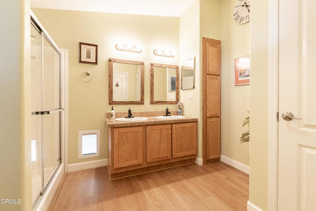 An exceptional offering in the esteemed Golden Oaks 55+ CommunityBuilt in 2006 and thoughtfully maintained, this beautifully appointed 3-bedroom, 2-bath residence offers approximately 1,250 square feet of refined living space in one of Ojai's most sought-after 55+ communities. Designed for both comfort and ease, the home features luxury vinyl plank flooring throughout and updated appliances, creating a seamless and sophisticated interior aesthetic.The spacious primary suite is a true retreat, complete with elegant double-door entry into the en suite bath and a private exterior door providing direct access to the patio--ideal for enjoying Ojai's serene mornings and golden evenings.Outdoor enhancements include a composite deck, cedar fencing for added privacy, a charming Lady Banks rose adorning the carport, and a dedicated catio for your feline companion. Additional amenities include a newer roof (approximately two years old), washer and dryer included, a generous three-car carport, and a storage shed for added functionality.Space rent for the new owner is $861 per month which includes water, trash and sewer.Golden Oaks residents enjoy resort-style amenities including a pool, spa, clubhouse, dog park, and community garden. Ideally situated near scenic hiking trails, Lake Casitas, and convenient trolley and bus access, this exceptional offering blends peaceful community living with effortless accessibility in the heart of Ojai.