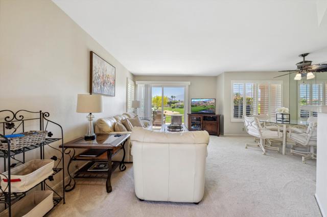 Chic End-Unit Condo with Mountain Views & Resort Amenities Welcome to your dream vacation or primary home! This beautiful end-unit condo offers privacy with no neighbors above and is surrounded by lush greenery and stunning south-facing mountain views. Open & Inviting Living Spaces Seamless flow between kitchen, dining, and living areas--perfect for entertaining or relaxing. Dining area features plantation shutters, a ceiling fan for breezy comfort, and a stylish barstool counter. Spacious Bedrooms & Modern Upgrades Vaulted ceilings and roomy closets in both bedrooms.Primary suite with queen bed, updated en-suite bath (2024), and in-unit laundry with LG washer/dryer behind a trendy barn door. Recent upgrades: refrigerator, microwave, dishwasher, AC, windows, and sliding doors--all new in 2024. Outdoor Living & Community PerksPrivate patio for relaxing or grilling.High-speed WiFi and internet included in HOA dues. Unlimited golf on a Par 3 walking course designed by Ted Robinson.Prime Location Across from Indian Wells Tennis Gardens (home of the BNP Tennis Tournament).Close to world-class golf, shopping, dining, and free local attractions.