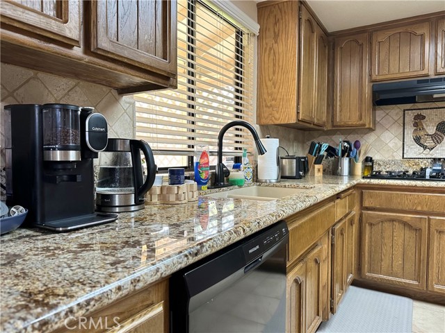 Welcome home to the sought after community of Spring Valley Lake located in the city of Victorville. Experience the perfect blend of comfort and community in this charming 1,744 sq. ft. residence (approx). Situated on an oversized 7,200 sq. ft. lot (approx), this 3-bedroom, 2-bathroom home welcomes you with beautifully landscaped front and back yards. The heart of the home features a spacious kitchen boasting granite countertops and abundant cabinet storage, flowing effortlessly into a dining room with elegant French doors. The cozy family room, centered around a classic fireplace, is perfect for chilly evenings. Retreat to the primary suite, which offers a touch of luxury with a granite-topped vanity and a custom tile-decorated shower. Outside, enjoy year-round entertaining under the large covered patio. With proximity to the lake, schools, shopping, dining and freeway access, this home offers a lifestyle of convenience and recreation.