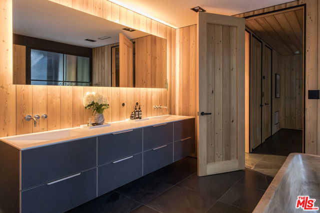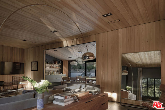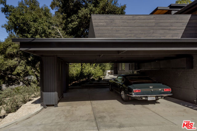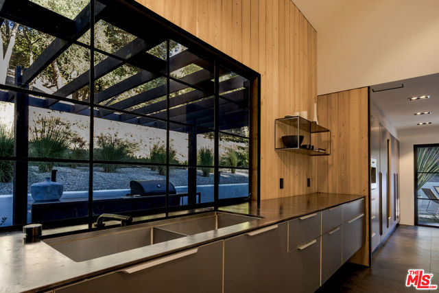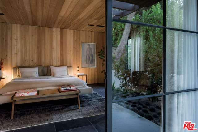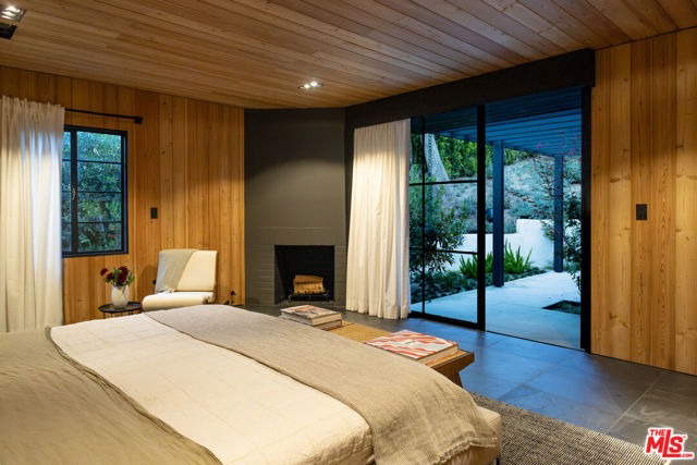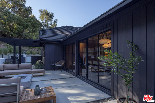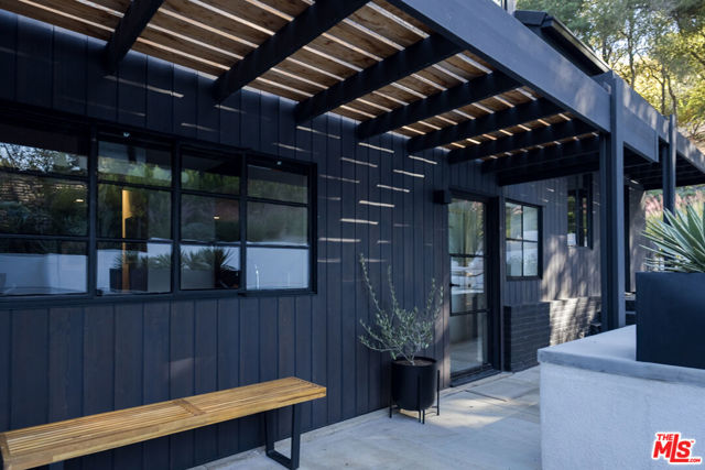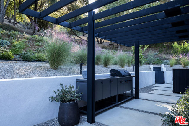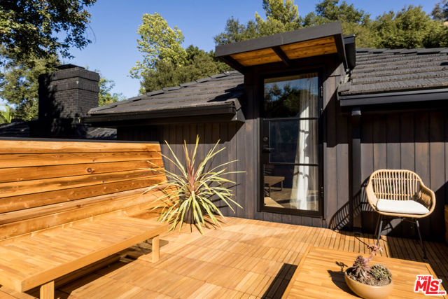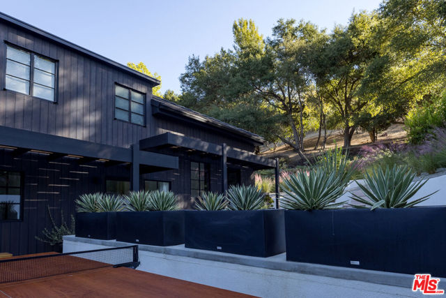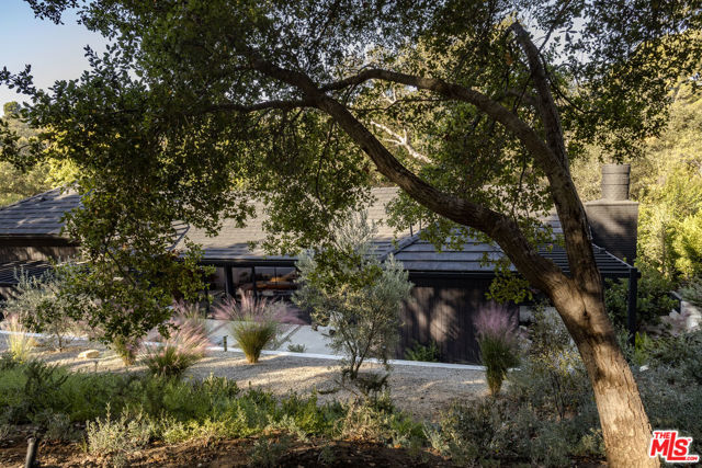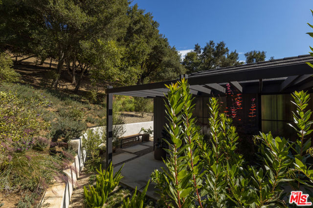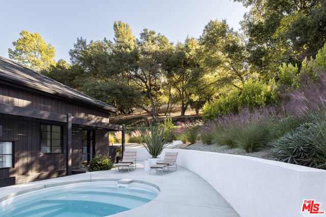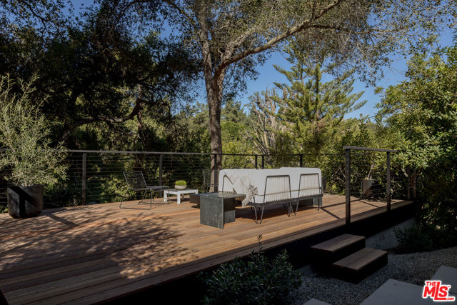PRICE REDUCTION - Set on a quiet cul-de-sac surrounded by estate properties and mature oak trees, this residence offers a rare combination of privacy, scale, and natural setting that is increasingly difficult to find on the Westside. This property has undergone a comprehensive architectural remodel, with interior and exterior elements fully transformed. The main living area features high ceilings, a fireplace, and custom built-in shelving, flowing into a kitchen appointed with Walker Zanger limestone counters and Gaggenau and Wolf appliances. The primary suite includes a fireplace, walk-in closet, private patio, and en-suite bath with Boffi fixtures and a solid travertine soaking tub. An upstairs secondary suite offers vaulted ceilings, lots of closet space, European oak flooring, a private deck, and an en-suite bath with custom cabinetry and slate tile.The lower level includes a media room, guest bedroom, and en-suite bathroom with steam shower. Outdoor spaces include carport with built in storage, multiple decks, a saline plunge pool, fire pit, and landscaped grounds. Located near the Westside, Mulholland, schools, and restaurants, the property offers both seclusion and accessibility. The approximately 1.3-acre lot presents a compelling opportunity for expansion or further development, subject to buyer investigation.