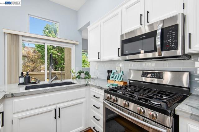 Welcome to this beautifully updated townhome in the highly sought-after Siena community. Situated on a private corner lot, this light-filled 2-bedroom, 2-bath home offers 1,064 sq ft of thoughtfully designed living space with an open-concept layout ideal for modern living. The updated kitchen features premium quartzite countertops, subway tile backsplash, breakfast bar, and stainless steel appliances, flowing seamlessly into the inviting living area with a cozy gas fireplace. Laminate flooring runs throughout, enhancing the home’s contemporary feel. Both bathrooms have been tastefully updated, and the in-unit washer and dryer add everyday convenience. Enjoy your private balcony or relax at the community’s below-ground pool and spa. An attached one-car garage completes the home. Conveniently located near Hwy 580/680, BART, Kaiser, Oracle, Iron Horse Trail, dining, shopping, and vibrant downtown Pleasanton, this home offers comfort, style, and an unbeatable location.