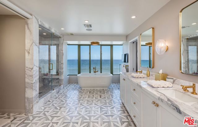 On the coveted sands of Escondido Beach, bordering Paradise Cove, home to some of the most expensive oceanfront real estate in the country, this stretch of coastline represents an extraordinary claim to the California dream. Here, the sand itself is among the rarest assets in America. This super private oceanfront coastal retreat has uninterrupted Pacific views and direct beach access. A garden entry opens to expansive living spaces defined by walls of glass and a seamless connection to the horizon. The ocean-view living room, anchored by a fireplace, custom aquarium, and built-in bar, extends to a full-width deck designed for sunset gatherings and open air dining. The chef's kitchen centers around a generous island with professional-grade appointments and direct access to the pool terrace, creating an effortless flow between indoors and out. Resort-caliber grounds offer layered outdoor living: koi pond, pool and spa, and a turfed side yard with BBQ island and pizza oven, ideal for pets, play, or additional entertaining space. Upstairs, the primary suite floats above the beach with fireplace, spa bath, bespoke 2 story closet w/ elevator, and walls of glass opening to a wraparound oceanfront deck. Two additional en-suite bedrooms complete the level. A gym or fourth bedroom connects to a private screening room with custom-painted ceiling and candy bar, a cinematic retreat within the home. Smart-home integration, automated shades, security system, backup generator, infrared sauna, and outdoor shower complete the offering. A refined expression of Malibu coastal living elevated, effortless, and entirely its own.