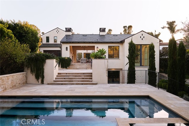 Designed by Domani Architecture and boasting unparalleled golf course views, this spectacular estate embodies a rare fusion of old-world craftsmanship and cutting-edge innovation. Offering five bedrooms and five-and-a-half baths in 6,506 square feet on a .34-acre lot, this architecturally stunning residence is truly one-of-a-kind. A single-lane driveway and rear-facing gated garages ensure a gracious and elegant curb appeal. Handcrafted steel windows, oak rift doors throughout, a slate roof, smooth stucco with copper accents, and a rich palette of the finest materials set the tone for uncompromising elegance. Stepping through the solid wood front door, a view unfolds from the intimate foyer to the light-filled courtyard, where a covered outdoor loggia extends the living spaces seamlessly. Designed for privacy and tranquility, this central gathering space creates the perfect area for entertaining. Inside, nine-foot-tall steel windows and doors blur the lines between interior and exterior, creating both drama and warmth. The living room, anchored by French Oak floors and a Town-and-Country fireplace, flows effortlessly into the chef’s kitchen, where a French Lacanche range, Calacatta marble countertops, and a butler’s pantry with a checkerboard marbled floor create the ultimate culinary experience. The Primary Suite is a private retreat with motorized window treatments, a marble-slab shower, and custom cabinetry. Additional bedrooms are spacious and inviting with designer finishes and built-in storage. Created to entertain with ease, the basement boasts a temperature-controlled wine cellar, a home theater with a 120” projector and Dolby surround sound, and a lounge finished in Roman clay. Outside, a saltwater plaster pool, fire pit, an outdoor kitchen, and French limestone patios were created to enjoy year-round. State-of-the-art amenities include a Savant Smart Home system, Lutron lighting, and distributed audio across multiple music zones, as well as a water filtration system and a natural gas-powered generator, ensuring smooth functionality. This extraordinary estate blends consummate craftsmanship with modern innovation, offering refined luxury in an idyllic setting.