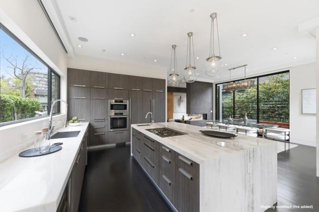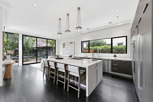 Welcome to 838 Cowper Street--refined and modern living in coveted Professorville, just a three-minute walk to downtown Palo Alto. Built in 2014, this 5-bedroom, 4.2-bath home offers 3,629 square feet of thoughtfully designed living space on a 5,600 square foot lot. Soaring 11' ceilings, floor-to-ceiling glass sliders, and Velux skylights fill the home with natural light. A dramatic 130-square-foot living wall of 650 plants and tiled waterfall create striking architectural focal points. The chef's kitchen features marble slab waterfall countertops, gas range, wine refrigerator, and built-in Bosch, Miele, and Thermador appliances. The basement extends the home's exceptional entertaining range with a fully equipped wet bar, home theater with surround sound, and (unexpectedly) a spacious, light-gathering patio. The home opens to a backyard with a jetted in-ground hot tub and outdoor kitchen with gas-plumbed grill, sink, and beverage fridge. Lutron lighting, motorized shades, 5-zone Sonos with Bowers & Wilkins speakers, and HEPA filtration provide modern comfort. The primary suite offers a steam shower, soaking tub, heated floors, towel warmer, and private deck with gas fire pit. Solar pre-wire, 220V EV charger, and whole-home security. Served by Addison, Greene, and Palo Alto High.