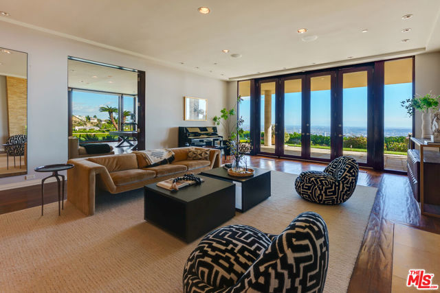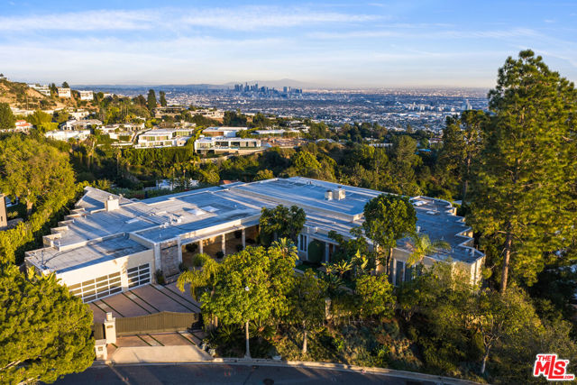 Paul Trousdale didn't shape this neighborhood by accident. He understood elevation, orientation, privacy, and views better than anyone. That's why Trousdale Estates became the pinnacle of Beverly Hills living. When you stand on a promontory lot like this, with jetliner views stretching from Downtown to the Pacific, you understand the vision.Located on one of the most exclusive streets in Trousdale Estates, this nearly 9,000 square foot, single-level estate sits on over 43,000 square feet of prime promontory land at the end of a quiet cul-de-sac. The unobstructed city-to-ocean views are breathtaking. Floor-to-ceiling glass walls open to expansive wraparound terraces designed for seamless indoor-outdoor living. The scale is already here. The layout is already right. The bones are exceptional.High ceilings. Expansive open flow. A grand entertaining room with wet bar. A formal dining room. A gourmet kitchen that connects naturally to family and breakfast areas overlooking the pool and spa. A primary suite with dual baths and generous walk-in closets. Multiple guest suites.