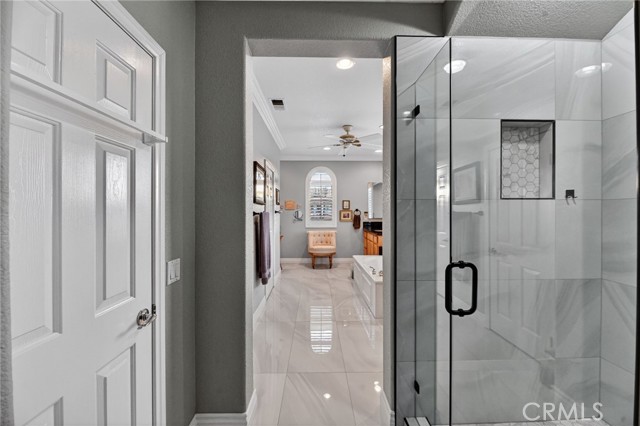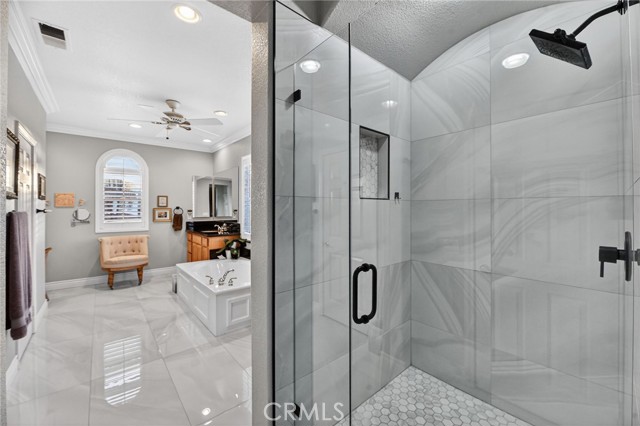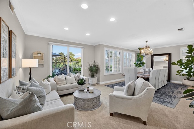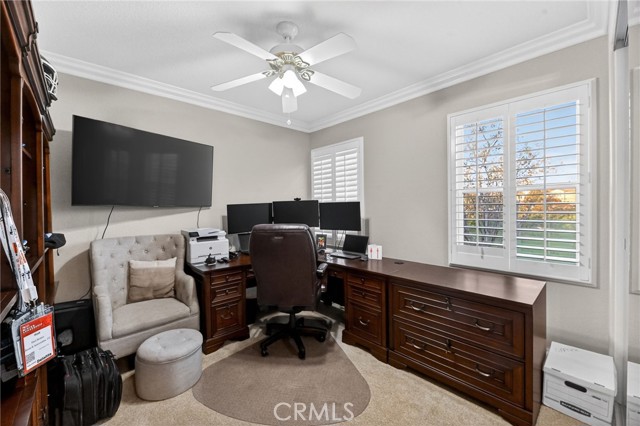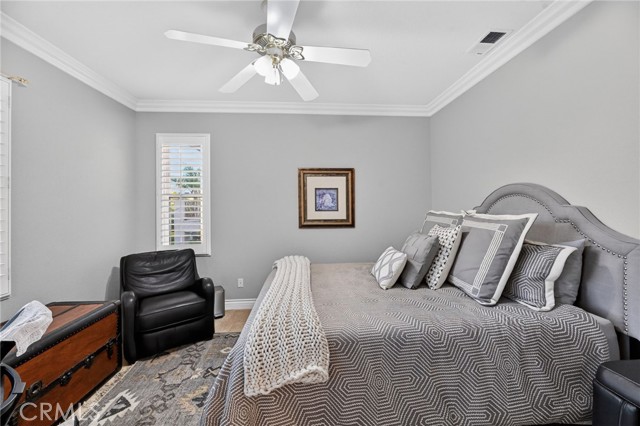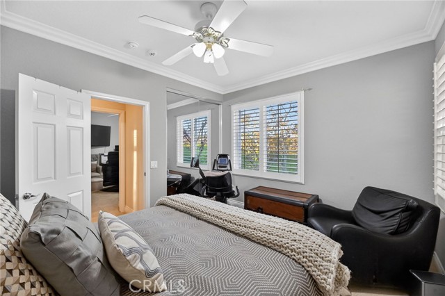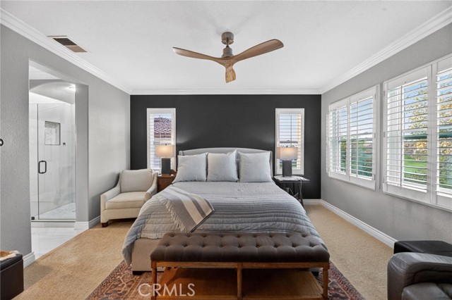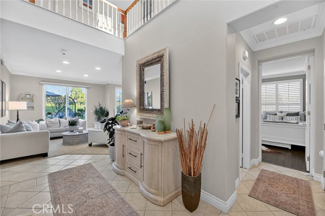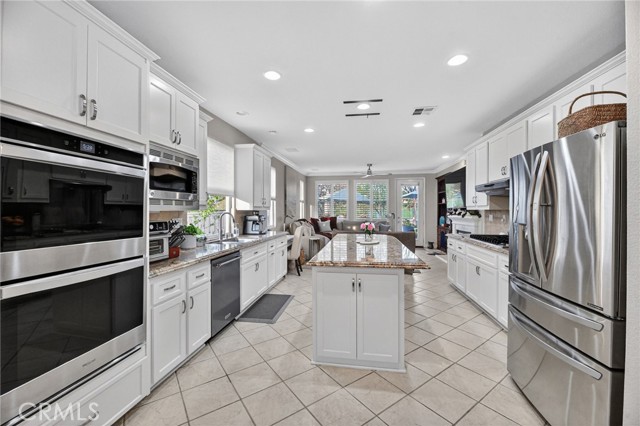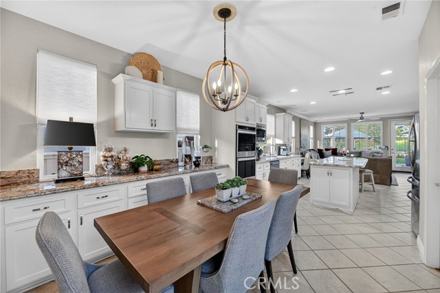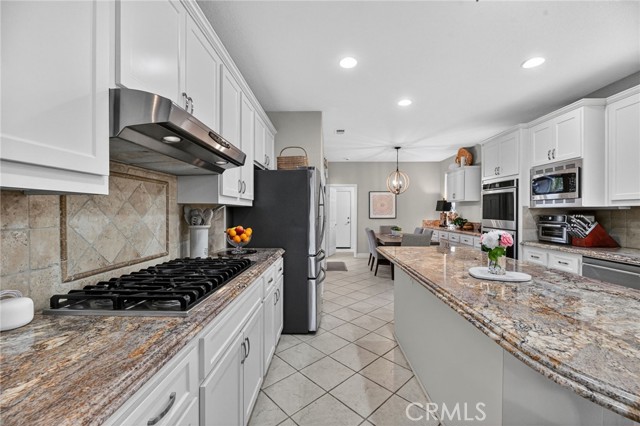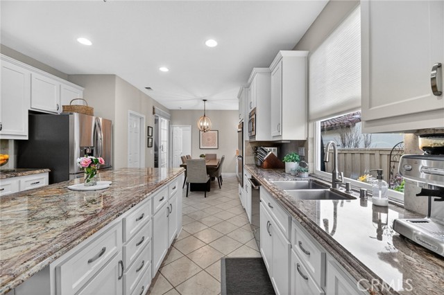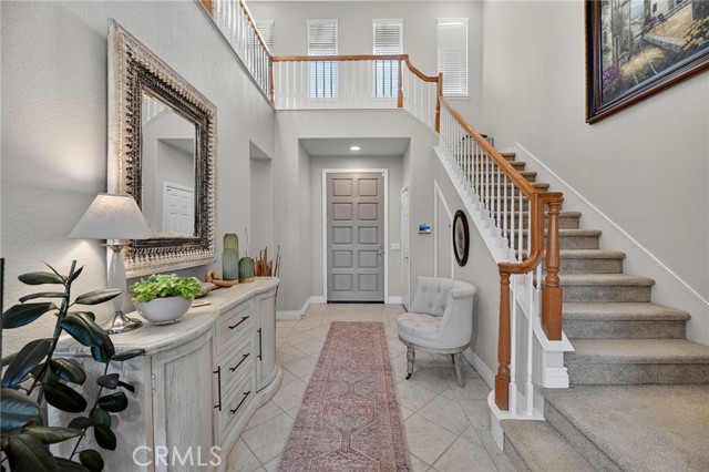Welcome to this beautifully appointed 4-bedroom, 3-bathroom home with an option for a 5th bedroom, offering 2,849 sq ft of spacious living in the highly sought-after Redhawk community of Temecula. Ideally situated near the Redhawk Golf Course and within the boundaries of award-winning Great Oak High School, this home blends comfort, functionality, and timeless style. From the moment you enter, you’re greeted by soaring ceilings, expansive windows, plantation shutters, and a seamless open-concept layout designed for both everyday living and entertaining. The formal living and dining areas connect effortlessly and are filled with natural light, enhanced by inviting golf course views. The chef’s kitchen is the heart of the home, featuring slab granite countertops, abundant cabinetry, a walk-in pantry, stainless steel appliances, recessed lighting, and a 6-burner Viking cooktop, all opening to the spacious family room with a cozy gas fireplace and custom built-in entertainment center. The home has been thoughtfully updated with roughly $75,000 in recent upgrades, including refreshed kitchen cabinetry, a remodeled upstairs bathroom, fresh interior paint, updated landscaping, elegant chandelier lighting, electronic window shades, new retractable door screens, and added security lighting and cameras. The main level includes a full bedroom and bath, ideal for guests or a home office, along with a laundry room offering a sink and extra cabinetry. The 3-car garage provides ample storage plus a dedicated workshop area with built-in cabinets. Upstairs, a versatile loft offers space for a media room or optional bedroom conversion. The expansive primary suite captures peaceful golf course views and includes dual closets, granite vanities, and a relaxing soaking tub. The secondary bedrooms are generously sized and filled with natural light. Outside, enjoy a spacious patio perfect for relaxing or entertaining, surrounded by drought-tolerant landscaping with turf in the front and back yards for low-maintenance living. Conveniently located near top-rated schools, shopping, dining, Pechanga Resort & Casino, and Temecula Wine Country, this home offers an exceptional lifestyle in one of Temecula’s most desirable communities.