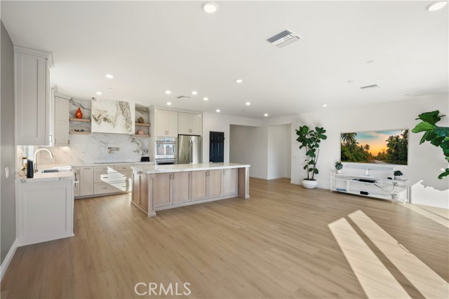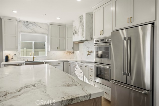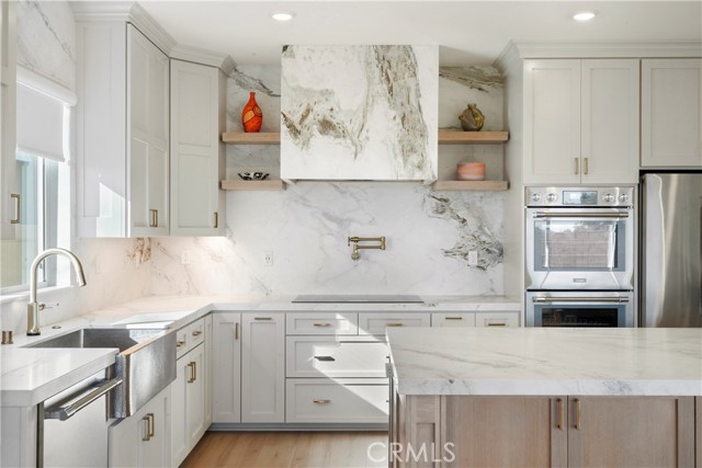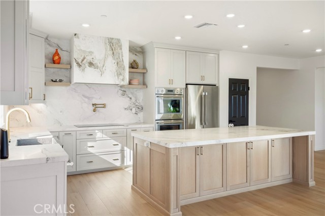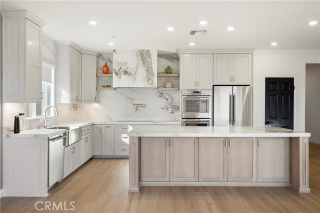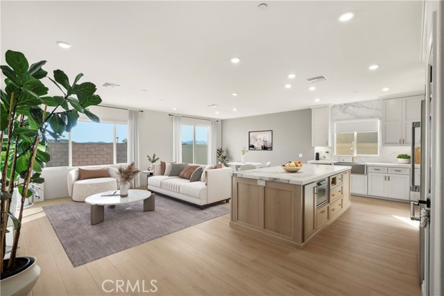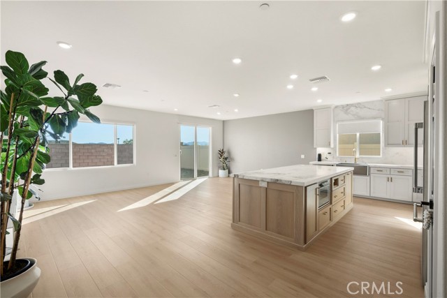 DESIGNER KITCHEN | LUXURY UPGRADES | If you appreciate a true chef’s kitchen and the ease of single-story living, this exceptional four-bedroom residence was designed with you in mind. Showcasing over $90,000 in high-end upgrades, it has been thoughtfully reimagined with refined materials and elevated finishes. The result is a sophisticated, move-in-ready home featuring premium kitchen appliances, curated designer details, and a level of comfort that quietly sets it apart in one of Riverside’s most desirable communities comprised exclusively of single-story homes. DESIGNER KITCHEN | The kitchen is a true showpiece, anchored by a professional-grade Thermador appliance suite including double convection ovens, electric cooktop, dishwasher, custom hood, refrigerator and built-in microwave drawer. Calcutta honed marble flows across the countertops, oversized island, and full-height backsplash, offering understated elegance and timeless durability. Custom cabinetry with soft-close drawers provides tailored storage solutions, finished in Solstice by Sherwin-Williams along the perimeter and complemented by a warm white oak island that adds depth and natural contrast. Brizo brushed nickel fixtures, including a SmartTouch faucet and wall-mounted pot filler, pair seamlessly with a Native Trails farmhouse-style brushed nickel sink to complete this bespoke culinary space. PRIMARY SUITE RETREAT | When it is time to unwind, the primary suite offers a quiet and comfortable escape. Natural light fills the room, enhancing its calm and cohesive design. The en-suite bath features dual vanities, generous counter space, and a spacious walk-in shower, creating a setting that feels clean, private, and comfortably refined. A well-sized walk-in closet adds both functionality and everyday convenience, completing this inviting retreat. ELEVATED LIVING | From the moment you enter, upgraded luxury vinyl plank flooring sets a warm, durable foundation. The open great room seamlessly connects the family and dining areas, creating a space that feels inviting for everyday living and refined for entertaining. Upgraded baseboards and modern lighting add clean architectural detail, while the customized laundry room with added storage enhances both function and style. Located within the highly regarded Riverside Unified School District, this residence offers a refined lifestyle in one of Riverside’s most desirable neighborhoods.