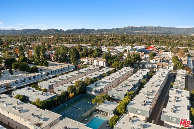 Welcome to this rare 3 BR, 2.5BA, end-unit, townhouse in prime Tarzana Gardens, boasting hardwood floors throughout, attached private 2-car garage, laundry room, recessed lighting throughout, living room with fireplace, tons of natural light, plantation shutters throughout, lots of storage, stainless steel appliances, community pool and tennis court, and much more. Enter in to the large living room featuring hardwood floors, fireplace and an open floorplan, flowing into the large dining area and chef's kitchen. The kitchen features tile floors, granite countertops and all stainless steel appliances. Wide French door refrigerator. Slide-in gas range with venter hood, and stainless dishwasher, as well as tons of storage space. Downstairs find your private attached 2 car garage with stairs leading directly to the kitchen. As well as a Utility/Laundry room with full size washer, dryer, and water heater. All 3 bedrooms located upstairs. Spacious primary suite looking over the courtyard with plantation shutters. Primary bathroom with double vanity and glass shower door. Two more guest rooms upstairs and a large guest bathroom with tub and shower. This coveted and well maintained community features gorgeously manicured landscaping, a sparkling pool and a full size tennis court for the ultimate mix of relaxation and play. Don't miss out on this rare opportunity to own a 3 BR unit in this fabulous community.