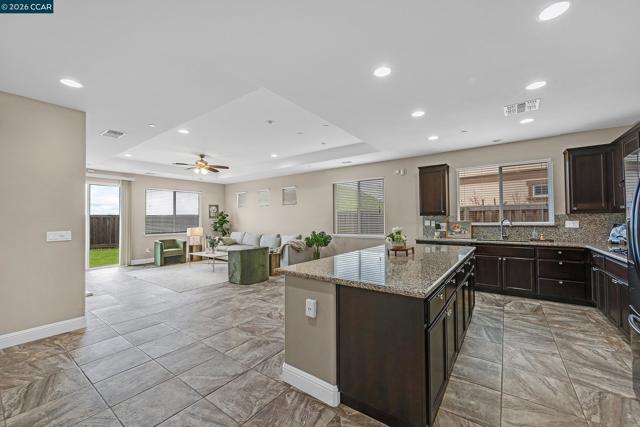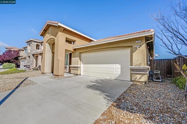 Beautiful single-story home located in the highly desirable Bellagio at San Marco community. This spacious home offers 4 bedrooms and 2 full bathrooms with high ceilings and a wide hallway that creates an open, airy feel throughout. The stunning kitchen features a huge waterfall island, granite countertops, gas burners, built-in oven and microwave, and a generous pantry. Ceremic tile flooring flows throughout the main living areas, leading into a cozy family room with a gas fireplace and built-in wall shelving next to the TV. The main bedroom suite offers a walk-in shower, jacuzzi tub, double sinks, and a large walk-in closet. Two additional spacious bedrooms share a full hallway bathroom complete with double sinks, a tub, tile floors, and built-in linen cabinets. Additional highlights include a laundry room with overhead cabinetry, a 2-car garage with Tesla charger, and a new water heater. Enjoy a private backyard backing to open space with low-maintenance landscaping, as well as a low-maintenance front yard. Prime commuter location — just minutes to the freeway and BART. Don’t miss this opportunity! Open house 3/7 1:30pm-4:00pm, 3/8 2:00pm-4:00pm.