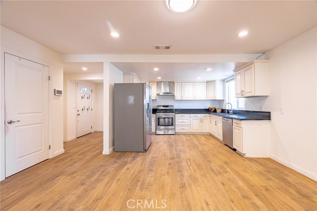 This charming 4-bed home is located in one of Rowland Heights’ most sought-after neighborhoods and it has everything on your list: Timeless design details, lots of bonus storage space and top-tier schools within walking distance. Inside the front door, you’ll find fresh paint, LVP flooring throughout (no carpets here!) and a bright, open floorplan. The kitchen features a great layout with granite countertops and stainless steel appliances. The living room has a cozy fireplace and leads directly to a huge permitted family room addition at the rear of the floorplan. Open the double slider and step outside to enjoy morning coffee or dinner on the patio. The rest of the backyard includes a nice lawn with room for your garden boxes and a playscape. Back inside, the corner primary bedroom boasts an updated ensuite with a big vanity as well as a custom-tiled shower with a frameless glass door. The guest rooms share the spacious hallway bathroom, which has the same modern finishes as the primary suite. The third guest room off the dining area would also make a great home office! Don’t forget about the floor-to-ceiling storage in the attached 2-car garage, plus all the closet space in the bedrooms and along the main hallway. This home is zoned to excellent schools and you’ll be close to all the shopping & dining along Colima Road. Hop on the 60 or 57 Fwys in no time at all! Easy commutes to Anaheim or LA, with the beach just 45 mins from your front door!