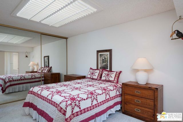 1st time on market since 1997. This single-level Cathedral Canyon Country Club condo offers 3 bedrooms and 2 baths, cathedral ceilings, plantation shutters, fireplace, attached two-car garage with a recently updated HVAC system and refrigerator. The outdoor patio looks toward a greenbelt with mountain views and home is positioned at the end of a cul-de-sac. The gated community offers 6 pools and spas, tennis courts and golf. HOA includes: basic cable, trash, sewer, exterior maintenance, roofing and landscaping. This home is waiting for your personal taste and interior design. Offered partly furnished.