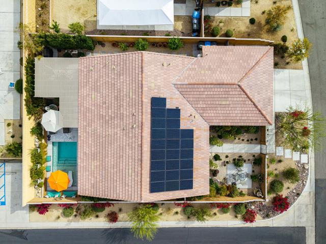 Welcome to your dream home in the highly desirable Agua Dulce community of Desert Hot Springs -- where modern upgrades, thoughtful design, and desert beauty come together. This stunning residence has been extensively upgraded, offering both style and functionality throughout. Step inside to discover beautiful upgraded flooring that flows seamlessly through the open-concept living spaces. The fully enhanced kitchen is a showstopper, featuring upgraded appliances, a designer backsplash, and modern finishes that make cooking and entertaining a true pleasure. The bathrooms have been tastefully designed with elevated finishes, creating spa-like retreats within your own home. Energy efficiency is top of mind with additional solar panels, helping you enjoy lower utility costs while living sustainably. Car enthusiasts and hobbyists will appreciate the expanded garage, offering extra space for vehicles, storage, or a workshop setup. Step outside to your private backyard oasis -- complete with a sparkling pool and beautifully designed landscaping that provides both serenity and privacy. Whether you're hosting gatherings or enjoying a quiet evening under the desert sky, this outdoor space is made for relaxation. In the front courtyard, you'll find a charming patio perfectly positioned to capture breathtaking mountain views -- the ideal spot for morning coffee or sunset unwinding. This exceptional property offers upgraded comfort, energy efficiency, and resort-style living all in one of Desert Hot Springs' most sought-after communities. Don't miss the opportunity to make this elevated desert retreat your own.