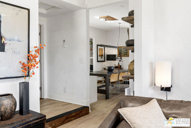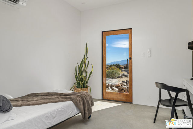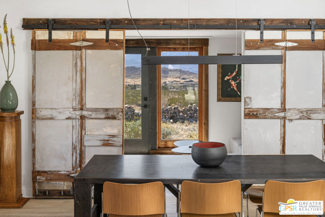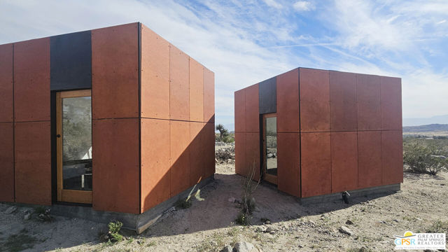 Located just thirty minutes from downtown Palm Springs, Sky Valley is a laid back, artistic community offering natural hot springs, serene desert landscapes, and a peaceful escape from the hustle of city life. This home was originally built in 1960 and has been reimagined by a series of creative owners. The current owners have completed a comprehensive renovation inside and out that includes: updated plumbing, upgraded electrical system with a new 200amp panel, fresh exterior finishes, and a new roof. The main house is 1,246 sf and includes the master suite, den with sliding barn doors and murphy bed for an added guest space, plus views from the living room and den that are unmatched. Three new detached structures were added, ideal as bedrooms, a home office, gym, gaming room, or art studios. Recent renovations honor the home's original character by repurposing items and material found on the property, while also giving it a modern architectural appeal to supplement the charm. The landscaping has been done with water-wise, native plants and a new drip irrigation system. Fully-electric and situated on 2.5 private acres, the property backs up to endless miles of hiking trails and places for the dog to run. The views and peacefulness of this property are something you need to experience in person to fully appreciate. Schedule your tour today, you will be glad you did!