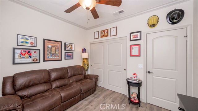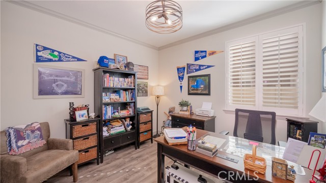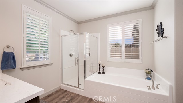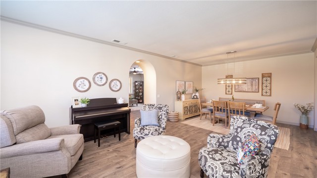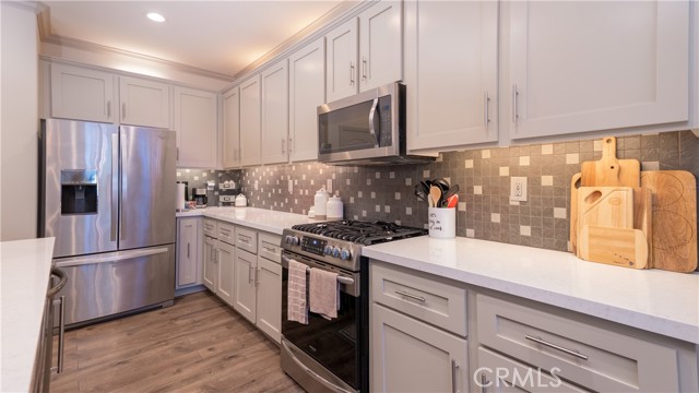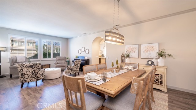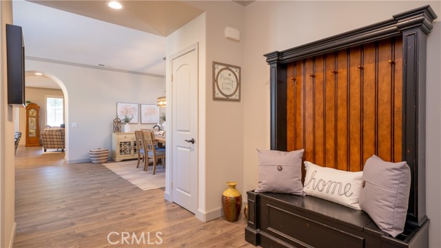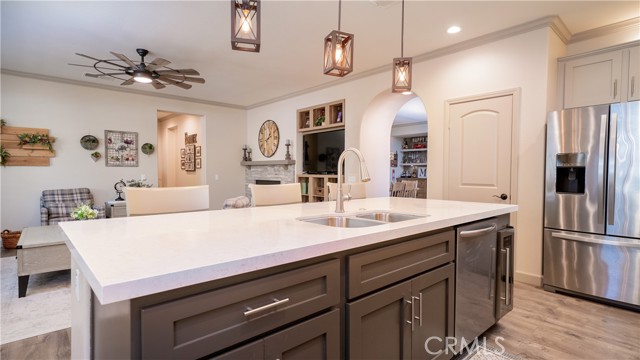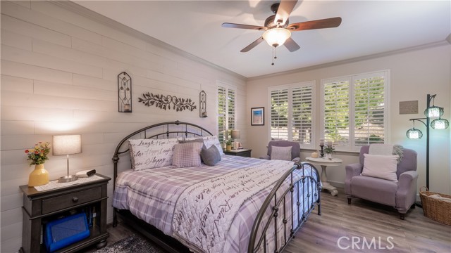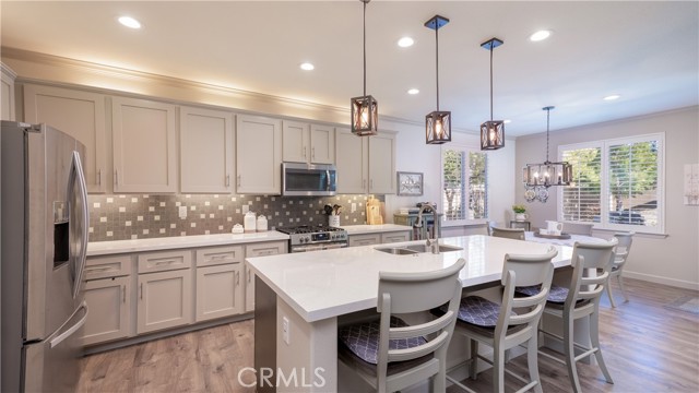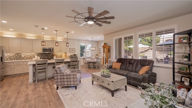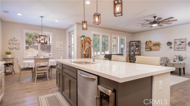 Welcome to this beautifully upgraded single-story home in the highly sought-after Spencer’s Crossing community, offering 4 bedrooms, 3 bathrooms, and a spacious 3-car garage on a premium corner lot in a peaceful neighborhood. Single-story homes of this size, condition, and layout are rare — and this one truly delivers. Lush, manicured landscaping with front and back drip systems immediately showcases pride of ownership, while the freshly painted front door and Ring doorbell create warm, welcoming curb appeal. Inside, Luxury Vinyl Plank flooring extends seamlessly throughout, complemented by crown molding, custom paint, recessed lighting, ceiling fans in every room, plantation shutters, and custom paneled interior doors — a true model-home feel from the moment you step in. The formal living and dining areas are bright and refined, enhanced by modern lighting and a built-in bar that’s ready for entertaining. At the center of the home, the remodeled kitchen shines with quartz countertops, a full custom backsplash, shaker-style cabinetry, stainless steel appliances, a large center island with pendant lighting, walk-in pantry, and built-in wine chiller. It opens effortlessly to the inviting family room featuring a ceiling fan, custom-tiled fireplace with mantle, and built-ins that create warmth and functionality. The private primary suite offers a luxurious retreat with custom wood wall detailing and a spa-inspired bath complete with dual vanities, soaking tub, walk-in shower, and generous walk-in closet. The insulated 3-car garage includes built-in cabinetry and shelving for organized storage. Outdoors, enjoy wide side yards, vinyl fencing, rain gutters, exterior security cameras, solar lighting, mature trees, custom retaining walls, planter beds with drip system, and a charming potting table. Residents of Spencer’s Crossing enjoy resort-style amenities including multiple pools (the Oasis pool and kiddie pool), a 3,500 sq. ft. clubhouse, lighted sports park with baseball and soccer fields, basketball courts, scenic walking trails, BBQ areas, and playgrounds. Single-story homes here with this level of upgrades and care rarely come available. This isn’t just move-in ready — it’s lifestyle ready. If you’ve been waiting for the one that truly checks every box, this is it.