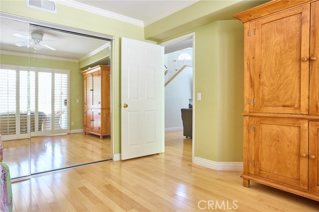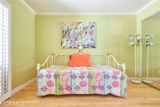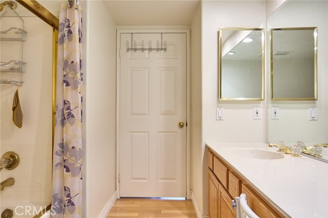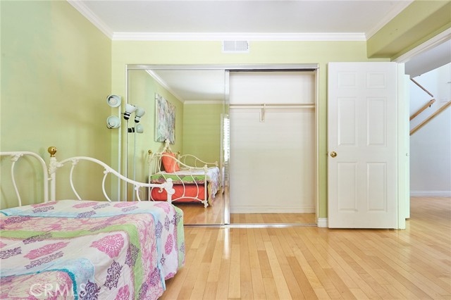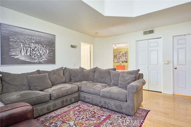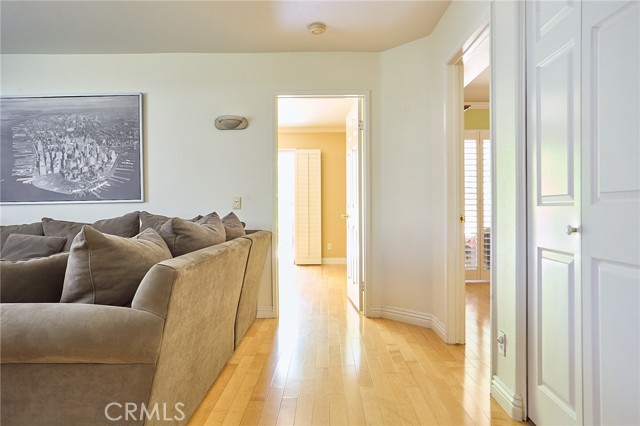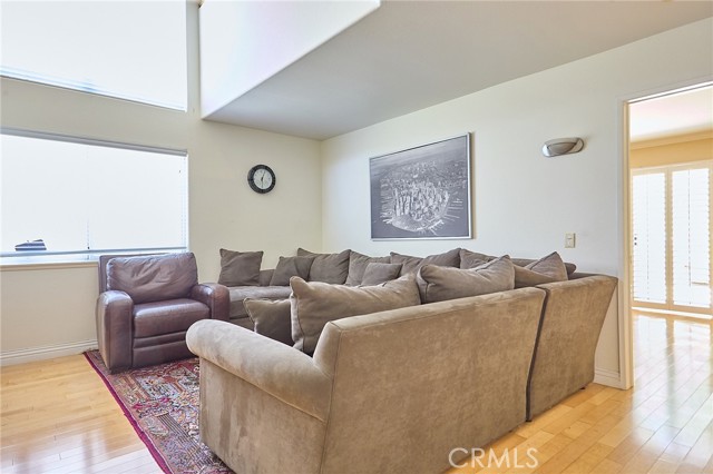 Large 3-bedroom split-level townhouse surrounded by stunning mountain trails and breathtaking scenic views! Ideally situated in a peaceful location away from the city's hustle, this home offers both privacy and a well-planned and the largest open floor design in the community that welcomes an abundance of natural light. Hardwood flooring flows seamlessly through the bedrooms, dining area, and hallways, complemented by soaring vaulted ceilings in the living and dining rooms. Enjoy the tranquility of nature from the spacious balcony, conveniently accessible from both the kitchen and living room, overlooking a serene back patio and lush greenery. The upper level expansive primary suite boasts a high ceiling, a generous walk-in closet, and a spa-like en-suite bath with dual sinks, a shower stall, and a soothing jacuzzi tub. The lower level features a versatile den/family room, two additional bedrooms, a full bath, and a dedicated laundry area. Sliding glass doors lead to a rare oversized patio—an outdoor retreat offering complete privacy and beautifully manicured grounds with direct yard access to trails and only 40 steps away from the massive outdoor pool, jacuzzi, BBQ, and lounge areas. Additional highlights include a two-car garage with abundant storage and cabinetry. A perfect combination of comfort, style, and natural beauty in an idyllic tranquil setting! Minutes from the shops, restaurants, theater, and more at The Vineyard Shopping Plaza in Porter Ranch.