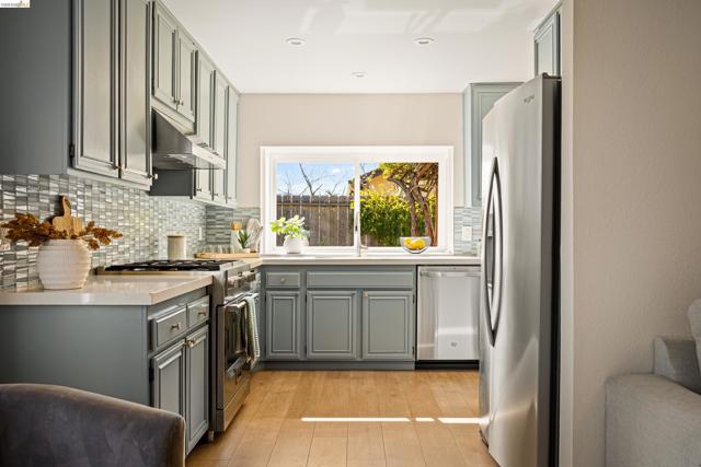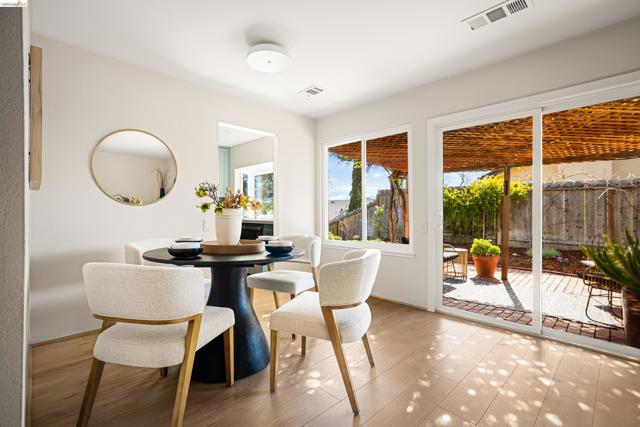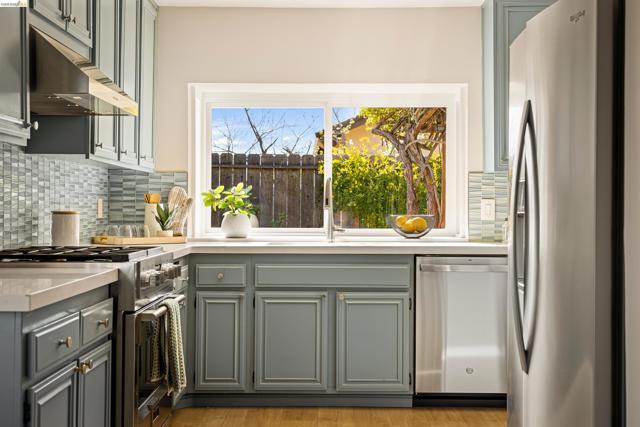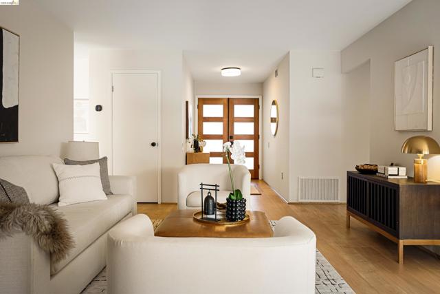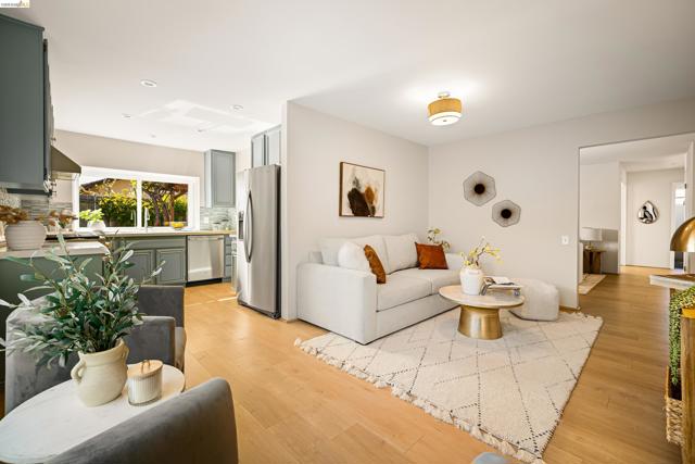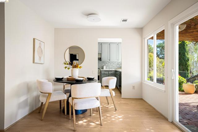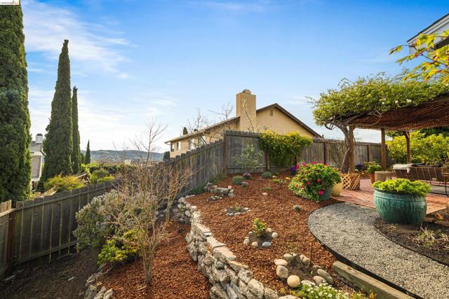 Pride of ownership shines throughout this elegant 3BR, 2BA single-level home on a expansive corner lot in the Richmond hills' sought-after May Valley neighborhood. Just minutes from Kennedy Grove Regional Park + Sobrante Ridge Regional Preserve, the location perfectly balances natural beauty with everyday convenience. A professionally curated front garden provides wonderful curb appeal and creates a memorable first impression. Inside, light-filled rooms in a flexible floor plan provide garden views from nearly every room. The tastefully updated kitchen includes quartz counters, a professional Fulor Milano range + recessed lighting. A family room off the kitchen is ideal for relaxing or a home office. The open LR/DR includes a dramatic brick fireplace + sliding doors to a weathered brick patio beneath a rose-covered pergola, perfect for seamless indoor-outdoor living. The spacious primary bedroom suite includes an ensuite BA + a double closet. Both BAs have been recently updated w/timeless finishes. The attached 2-car garage has ample custom designed storage. Additional updates include dual-pane windows, attractive laminate floors, fresh interior paint, new light fixtures, central AC, a tankless water heater and much more—all creating a home of comfort, style, and lasting appeal.