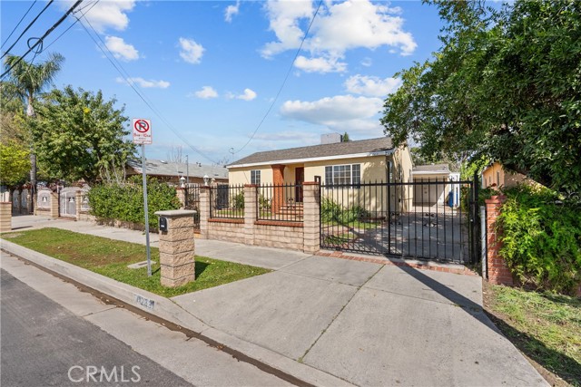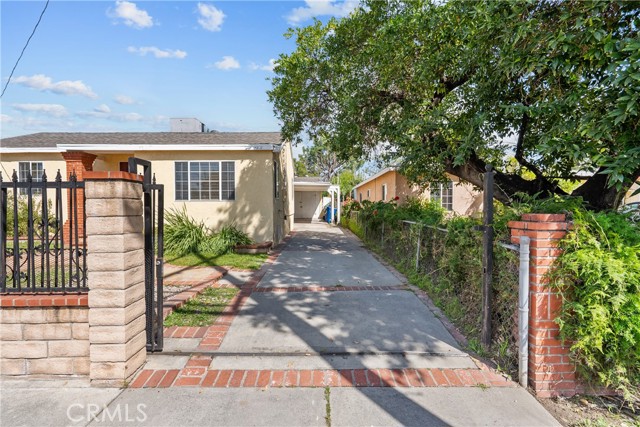Welcome to this charming home in San Fernando, offering comfort, character and incredible options for expansion. Beautiful brick and stone masonry creates inviting curb appeal, complemented by an attractive wrought iron fence and rolling gate for added privacy and security. Inside, you’ll find a thoughtfully upgraded interior featuring laminate and porcelain tile flooring, recessed dimming lights throughout, and double-pane windows with a sliding glass door for energy efficiency and natural light. The kitchen is designed for both style and function, showcasing granite beveled countertops and backsplash, warm wood cabinetry, and ample workspace. Central HVAC ensures year-round comfort, while copper plumbing and a 200-amp upgraded electrical panel provide peace of mind. This home offers 3 bedrooms and 2 bathrooms, with approximately 1,182 square feet of living space. The detached garage provides flexible space—ideal for a home office, studio, gym, or creative retreat. A water heater was replaced in 2025, and the carport roof was recently re-pitched and re-roofed in 2025. A covered and enclosed patio area under the carport includes a convenient laundry space with washer and dryer hook-ups. Step through the French doors into an expansive concrete backyard with brick accents, framed by palm trees, additional yard provides mature orange, lemon, pomegranate and plum fruit trees. The oversized lot offers endless possibilities—build an ADU, add a guest house, a swimming pool, create additional parking, or design your dream outdoor oasis. Ideally located just minutes from the 5, 118 and 405 freeways, with shopping, dining, parks, all within a short drive, centrally located within walking distance to grammar, middle and high schools, this home combines accessibility with neighborhood charm. Call today to schedule your private tour and explore all the possibilities this property has to offer.