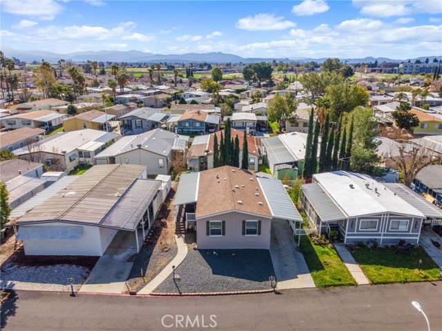 Welcome to this charming 3-bedroom, 2-bathroom home with an optional den, located in the highly sought-after 55+ Country Lake Mobile Home Community in San Jacinto. As you approach, admire the beautifully finished 8' x 31' deck with mesmerizing mountain views—perfect for lounging. Inside, you'll find newer vinyl flooring throughout, including inside the closets and modern nickel finishes on faucets, light fixtures, and fans. Enjoy light, bright spaces with stunning mountain views throughout each front window. The large deck offers serene views, and a newer shed is included for extra storage. The community features fantastic amenities such as a sparkling pool, jacuzzi, an activity center with a pool table and card tables. Breathtaking lake views, a walking trail with over 350 trees, adorable water fountain and bridge, dog park, horseshoe pit, community clubhouse, shuffleboards, and two fishing docks. RV storage is available for low rent. The photos truly don’t do it justice—come take a look!