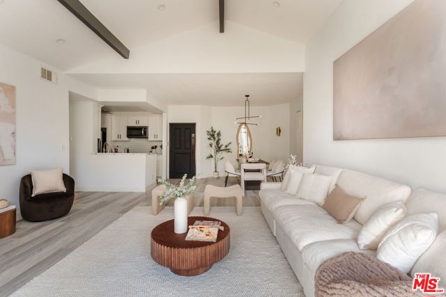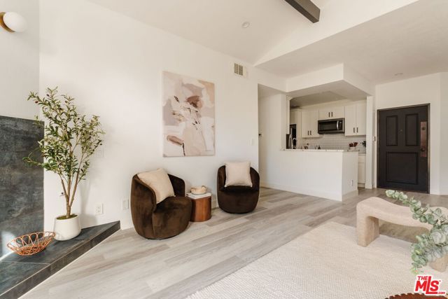 Perched on the top floor, this fully updated penthouse lives like a true escape in the Hollywood Hills, with the sky as your only upstairs neighbor. Nearly 1,300 square feet of airy, single level living is wrapped in natural light, vaulted ceilings, and an open great room anchored by a gas fireplace that instantly sets the mood for both entertaining and quiet nights at home. Tucked into its own private wing, the primary suite feels like a retreat, complete with a separate balcony, a generous walk in closet, and a spa inspired ensuite with dual vanity. Rare, real world perks seal the deal: a full size in unit washer and dryer, elevator access with no stairs, and two side by side parking spaces in a secure garage. Add the advantage of a low HOA and you get the quintessential Hollywood Hills lifestyle without the usual overhead. From here you are minutes to Universal, Warner Bros, and Burbank, plus easy access to iconic LA days and nights, from the Hollywood Bowl to Lake Hollywood trails, Griffith Park views, and the dining and nightlife of Studio City and Hollywood.